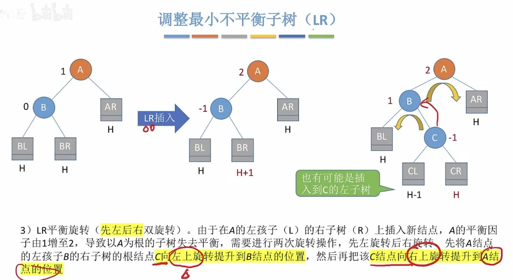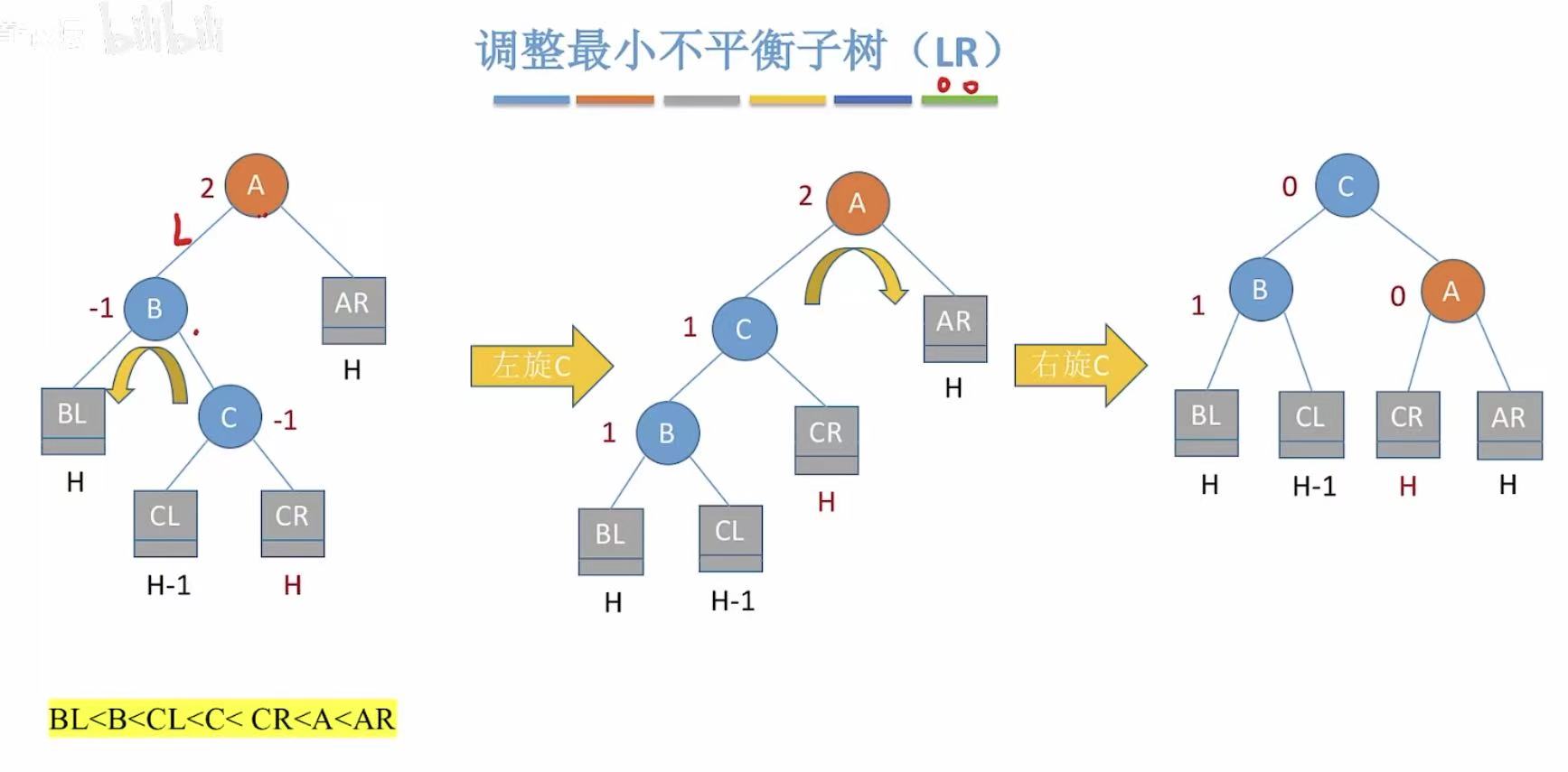 - 先左后右 :C最后是根节点,因为左旋和B换,所以C的左孩子让给B;因为右旋和A换,所以C的右孩子让给A。