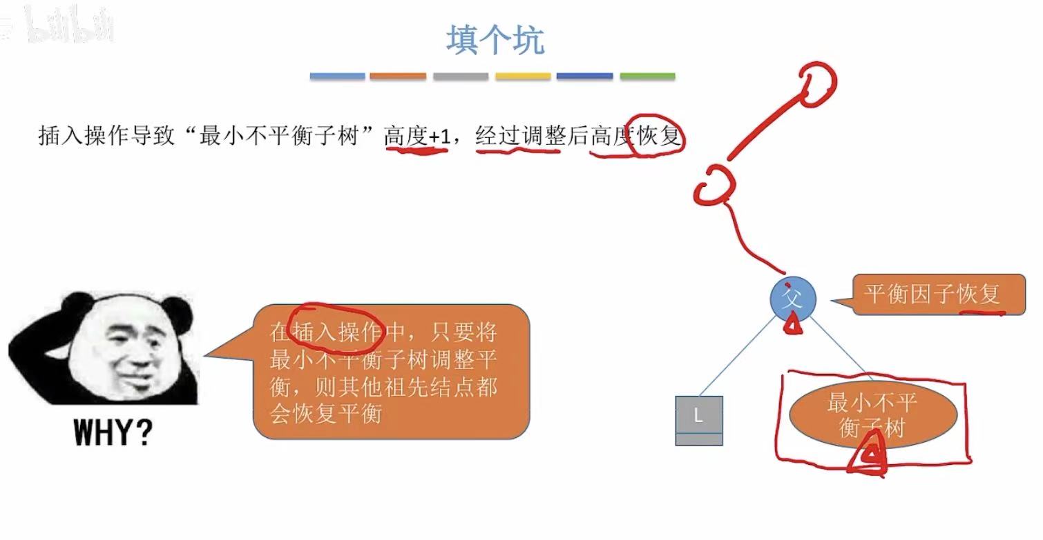 当我们调整了这个最小不平衡树,上面原本不平衡的结点,也会随着它的调整逐渐平衡。