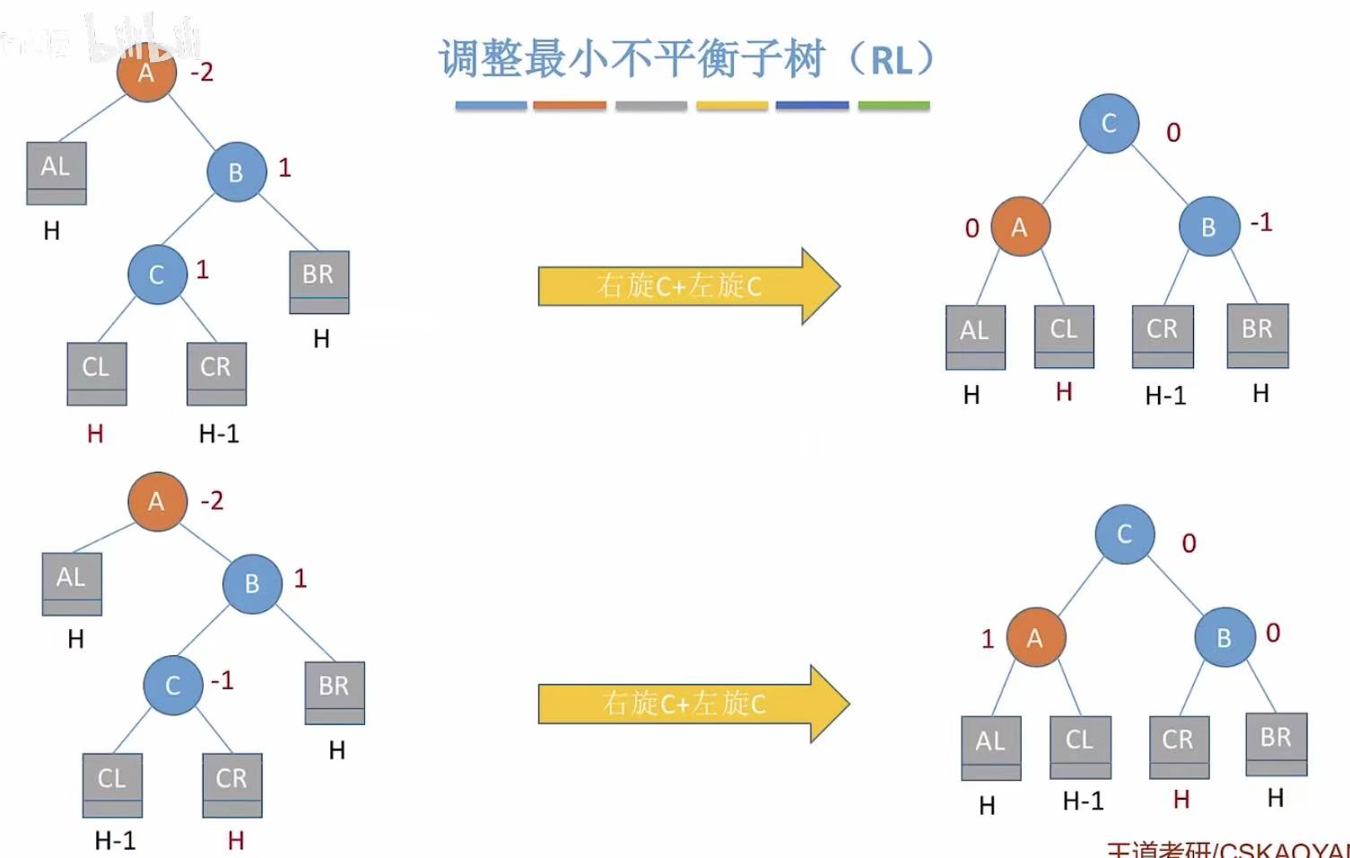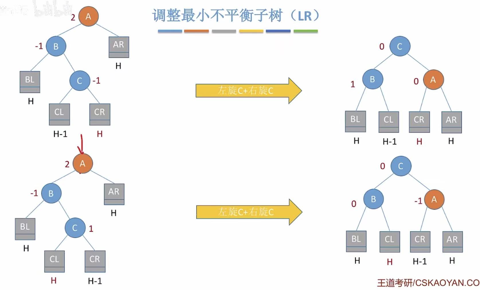 - 先右后左 :C最后是根节点,因为右旋和B换,所以C的右孩子让给B;因为左旋和A换,所以C的左孩子让给A。