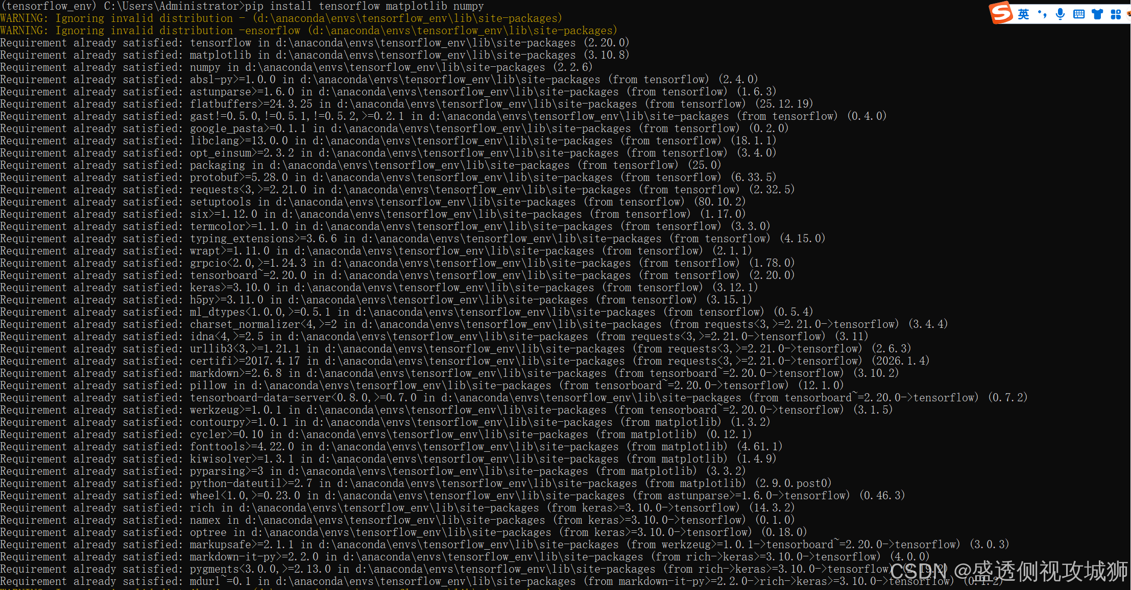 pip install tensorflow matplotlib numpy