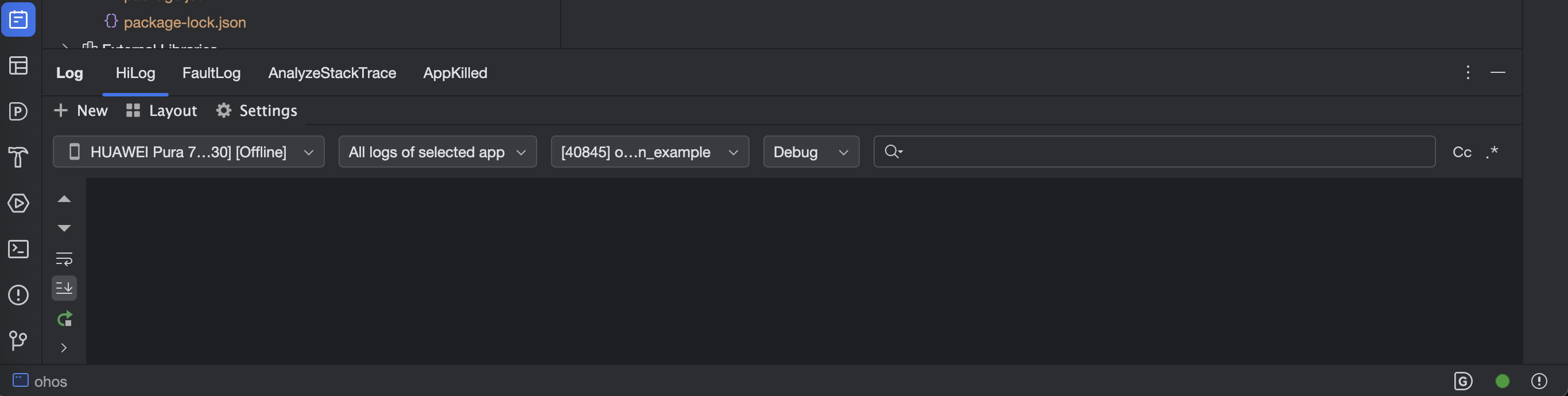 DevEco Studio HiLog 日志面板
