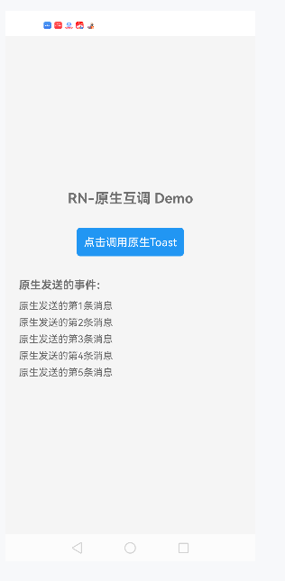 // 2. RN→原生:调用原生Toast方法