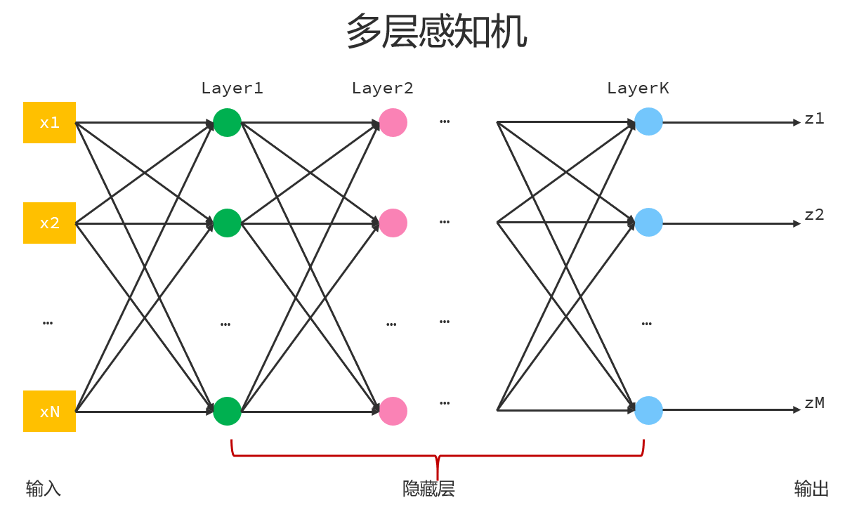简单点儿理解,多层感知机就是由多个单个感知机叠加而来的,每一层感知机都可以对输入的信息做整合处理并输出,输出的结果又作为下一层感知机的输入,这样层层传递,得到最终的输出。
