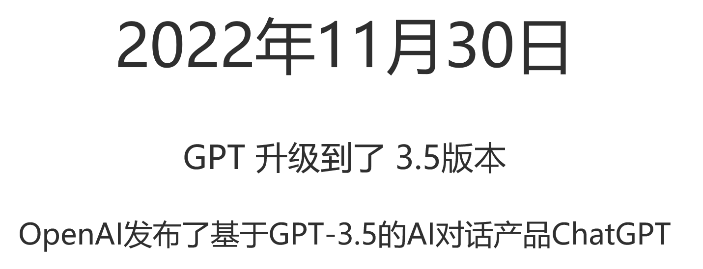 于是,2022年11月30日,OpenAI把GPT的版本升级到了3.5,并且发布了基于GPT3.5的对话产品ChatGPT,从此,OpenAI爆火全球,还有一个词也随之爆火,就是我们现在常听说的大模型 。模型刚才我们介绍了,就是实现了神经网络的软件,这里的大指的是参数规模,现在我们通常会把参数规模在1000亿以上的模型,称为大模型。