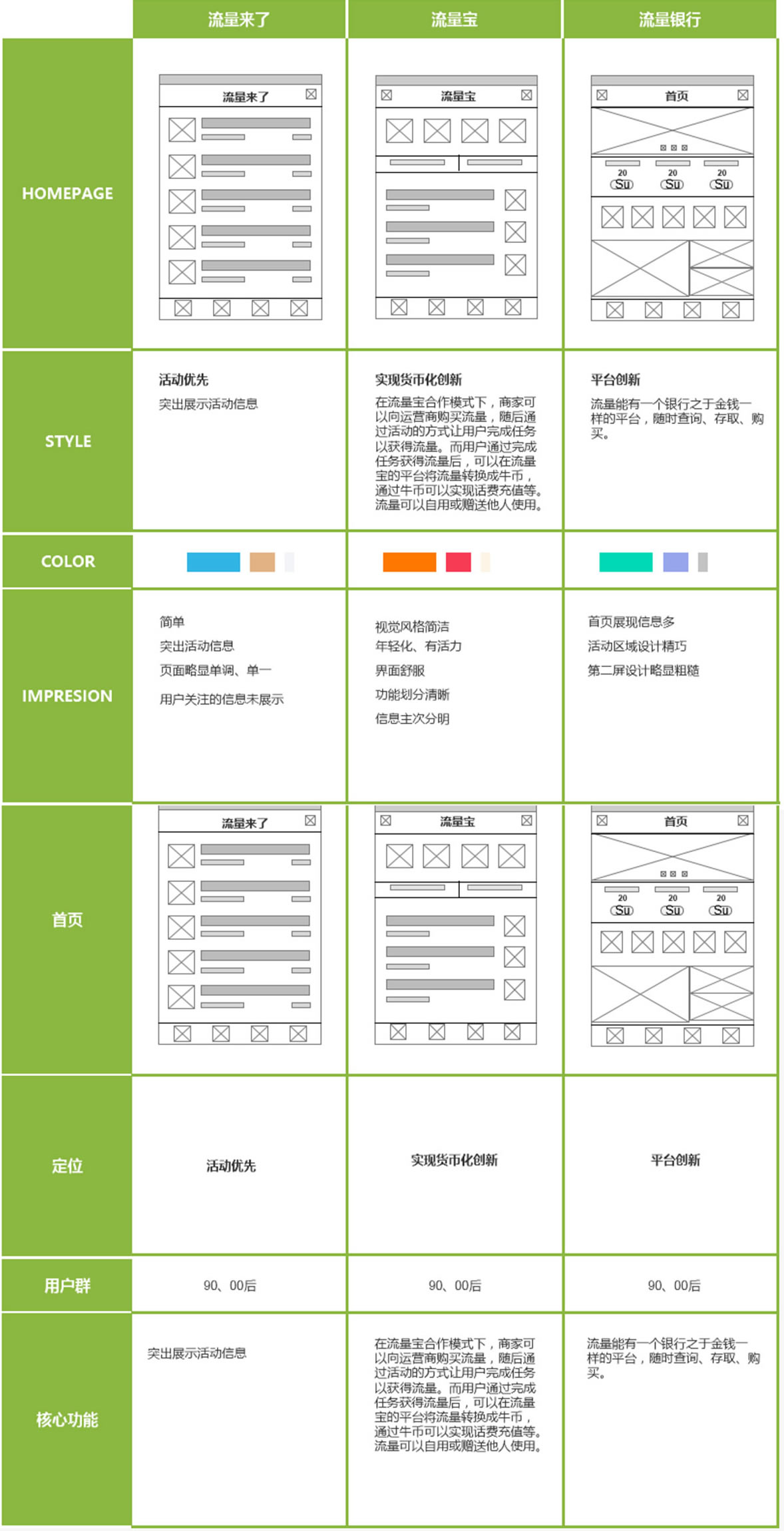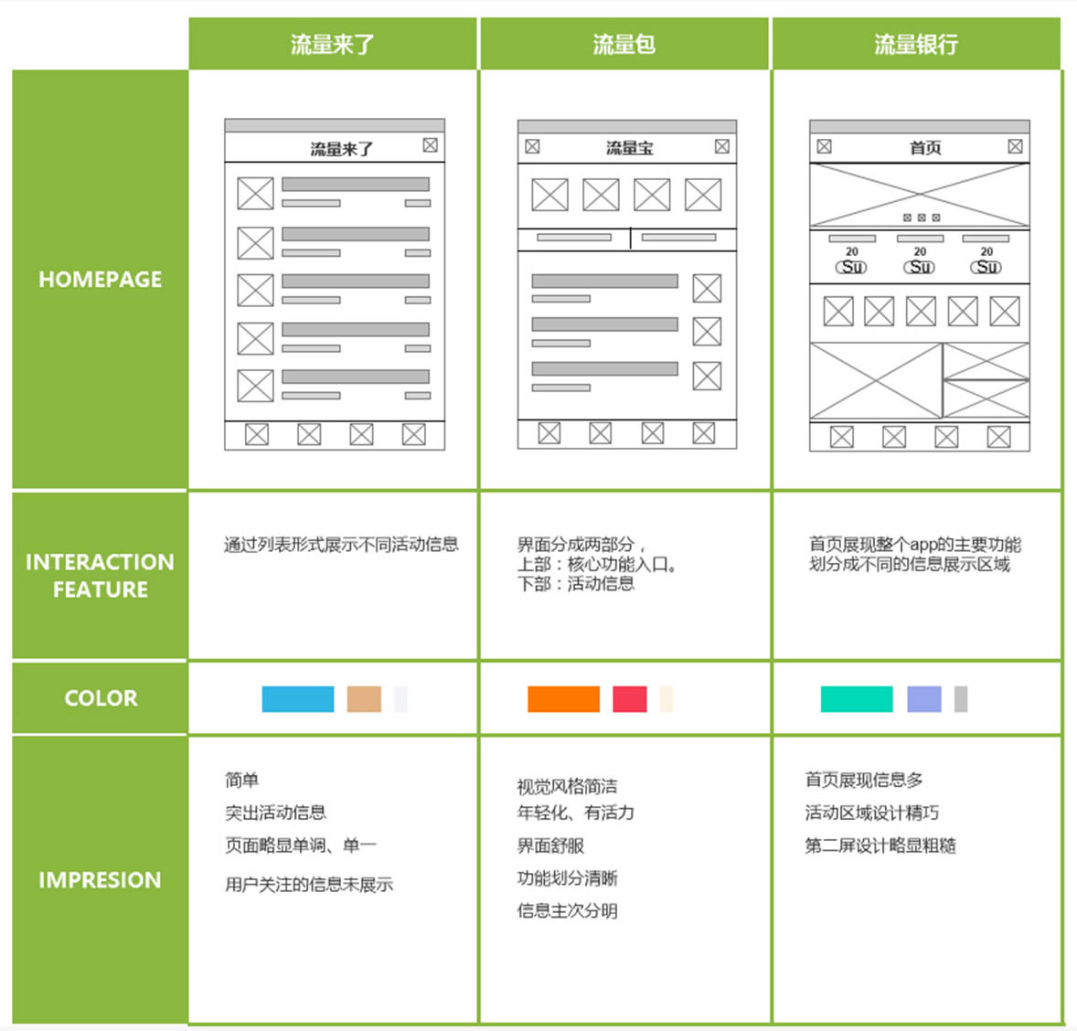 首页界面布局/核心功能/色彩/总印象/对比