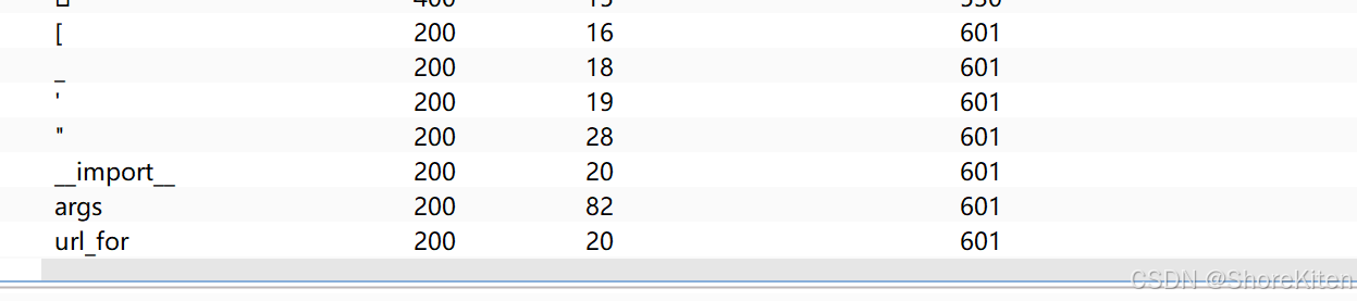然后长度点一下排个序,发现有几个不一样的,再看看响应就行,那么从这里就看出过滤了中括号,引号和args: