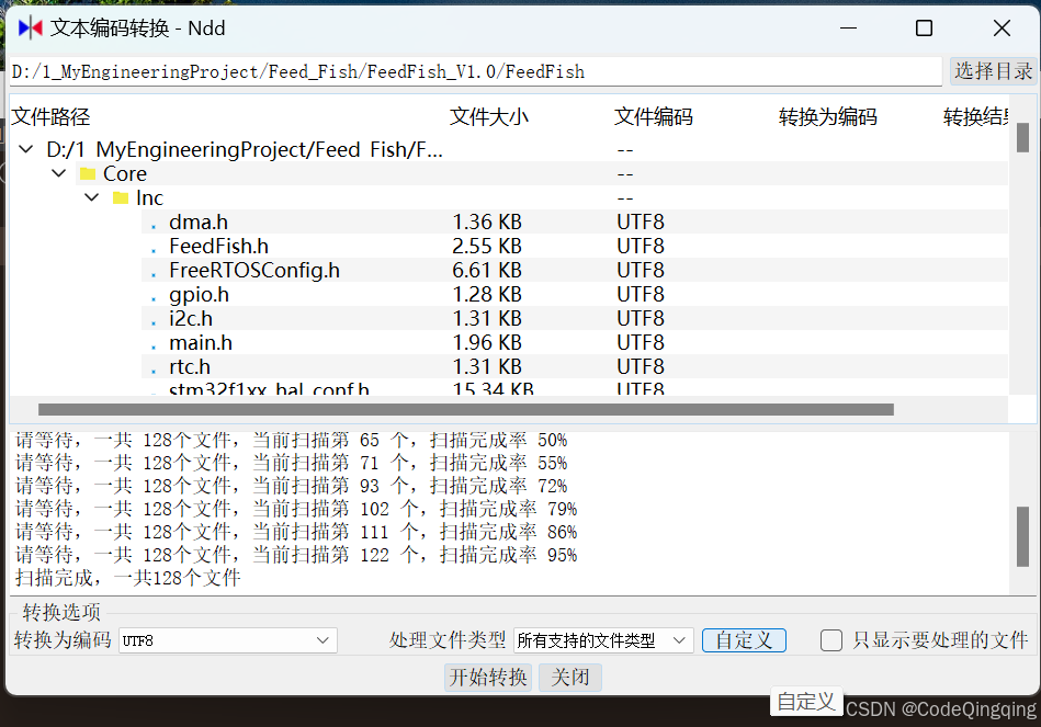 注意,在旧的工程中,对于自定义添加的文件,notepad-- 可能无法识别到,如果在代码编辑器中发现该文件中文乱码,则需要 notepad-- 单独打开该文件并转换文件编码。