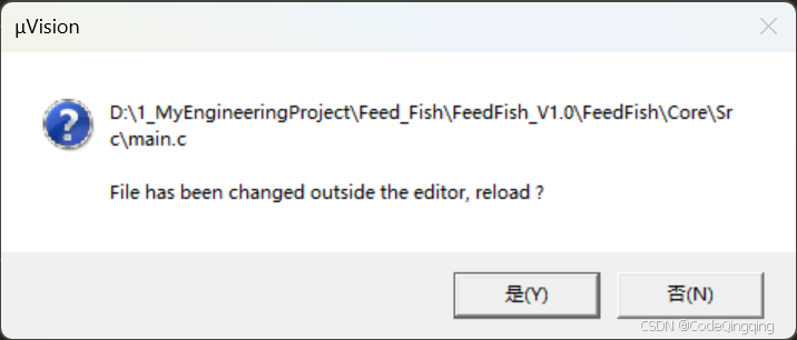 工程编辑完成后,打开 keil ,在下图中,点击是。这里是重新加载所有的已经修改的代码文件。之后在 keil 中正常编译、下载与调试。