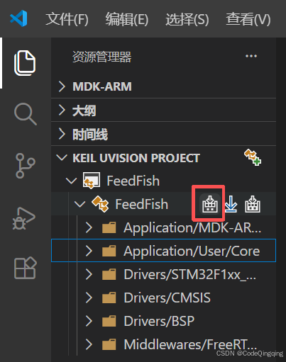 到此,vscode 成功打开工程,可以修改代码。修改代码完成后,点击下图红圈进行初编译,查看是否有语法错误。
