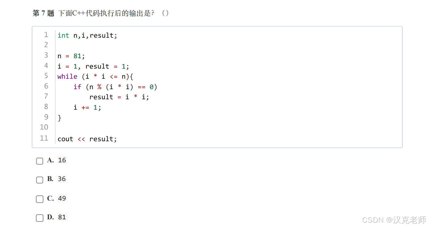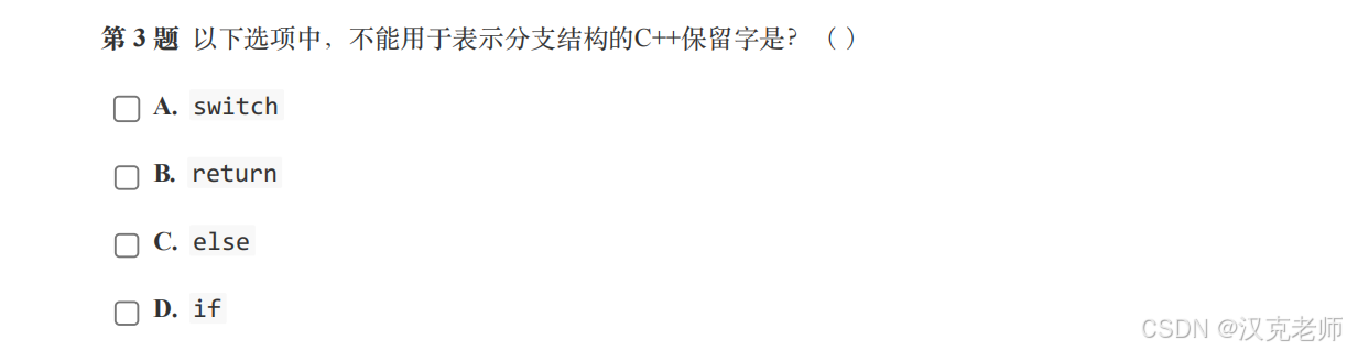 1、下列选项中,不能用于表示分支结构的C++保留字是?
