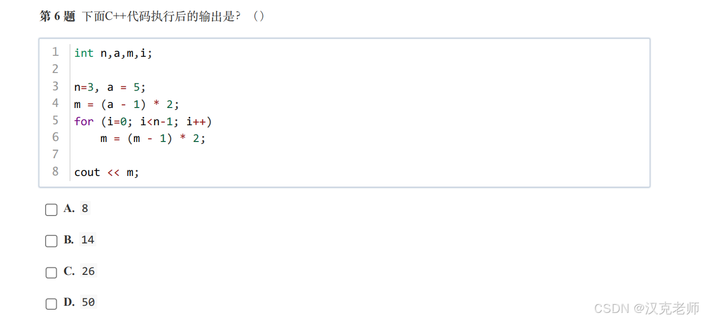 m = (a - 1) * 2; //m = (5-1)*2 = 8
