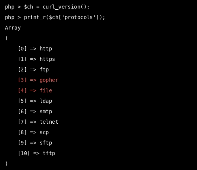 http, https, ftp, gopher , file, dict, telnet | 极高 | Gopher 协议是 SSRF 的"天花板",可构造任意 TCP 报文(模拟 POST)直接打内网 Redis、FastCGI。 |