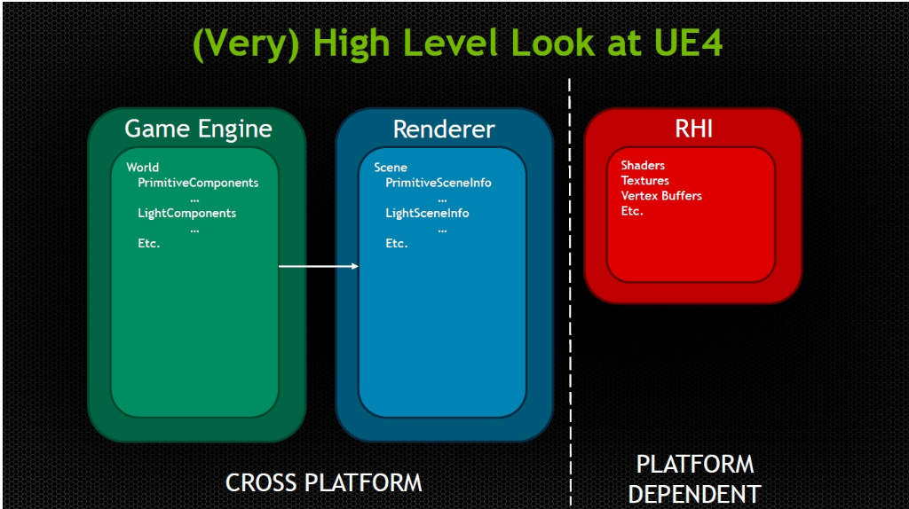 RHI(Render Hardware Interface,渲染硬件接口)的概念最初由跨平台游戏引擎Unreal于Unreal 1.0时期提出,早期为了支持Glide和DirectX,引擎抽象出一层封装层,用于拉齐不同渲染底层驱动的差异,在Unreal 2.0-3.0时期,随着OpenGL和DirectX双雄并立,正式确立了RHI的地位,作为Unreal 渲染体系中非常基础且重要的模块,RHI用于实现不同DirectX版本间的兼容和切换,RHI成为了固定标准,随着现代底层可控图形接口的兴起,RHI从抽象层逐步转变为渲染资源管理,同时引入了渲染命令队列和命令缓冲等概念,实现多线程渲染,减少了CPU的开销。