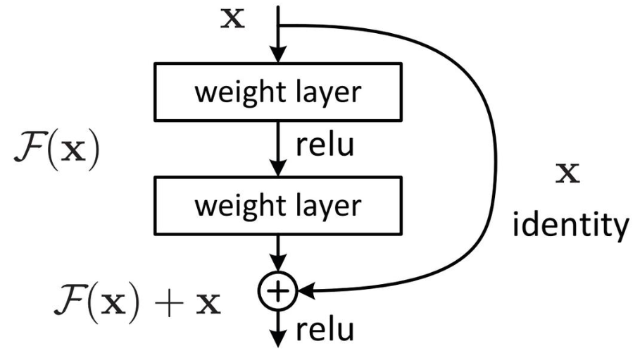 y = ReLU ( F ( x ) + x ) F ( x ) = W 2 σ ( W 1 x ) y = \text{ReLU}(F(x) + x) \\ F(x) = W_2 \sigma(W_1 x) y=ReLU(F(x)+x)F(x)=W2σ(W1x)
