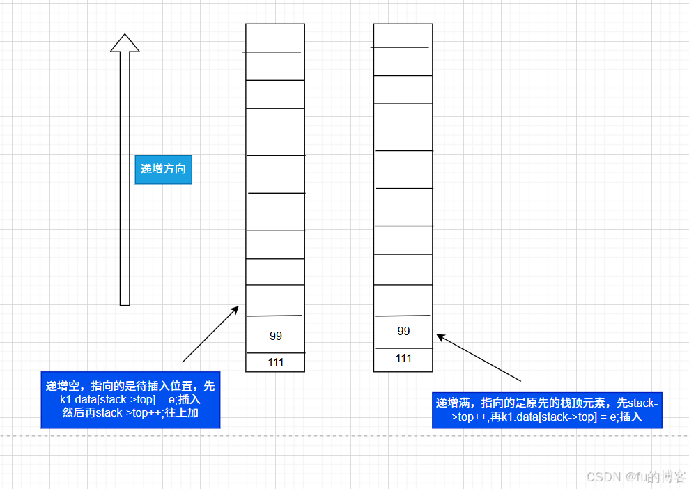 这你就想想定义MaxStackSize为5,从0开始压入元素,0-4就已经满栈,由于是递增空栈,这时候stack->top正好指在5的位置,也就是说stack->top这时候的大小正好为5(MaxStackSize)
