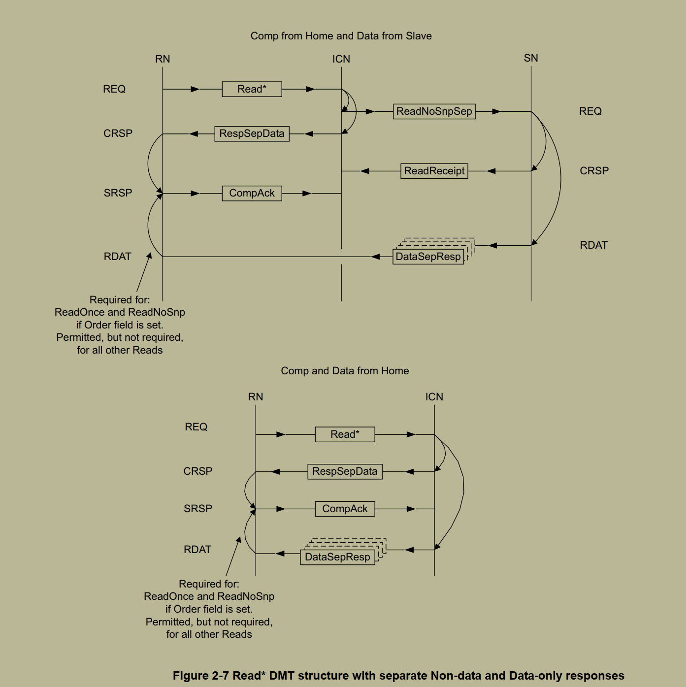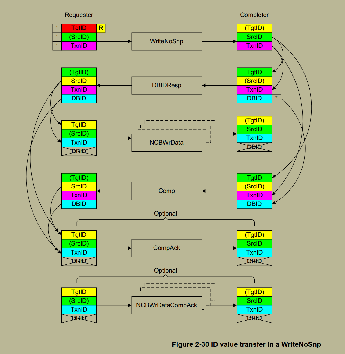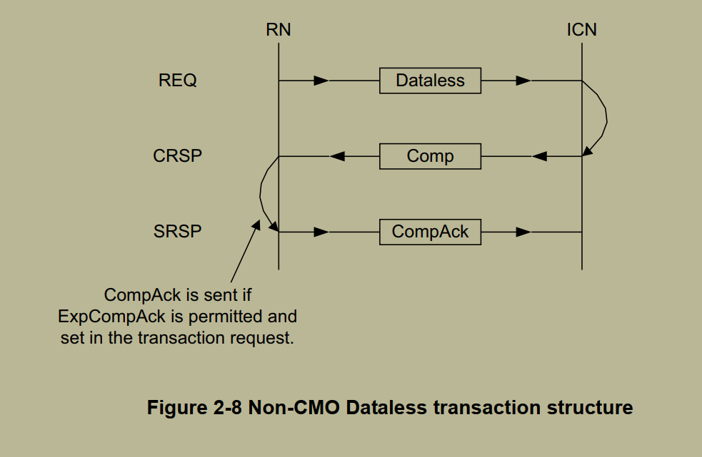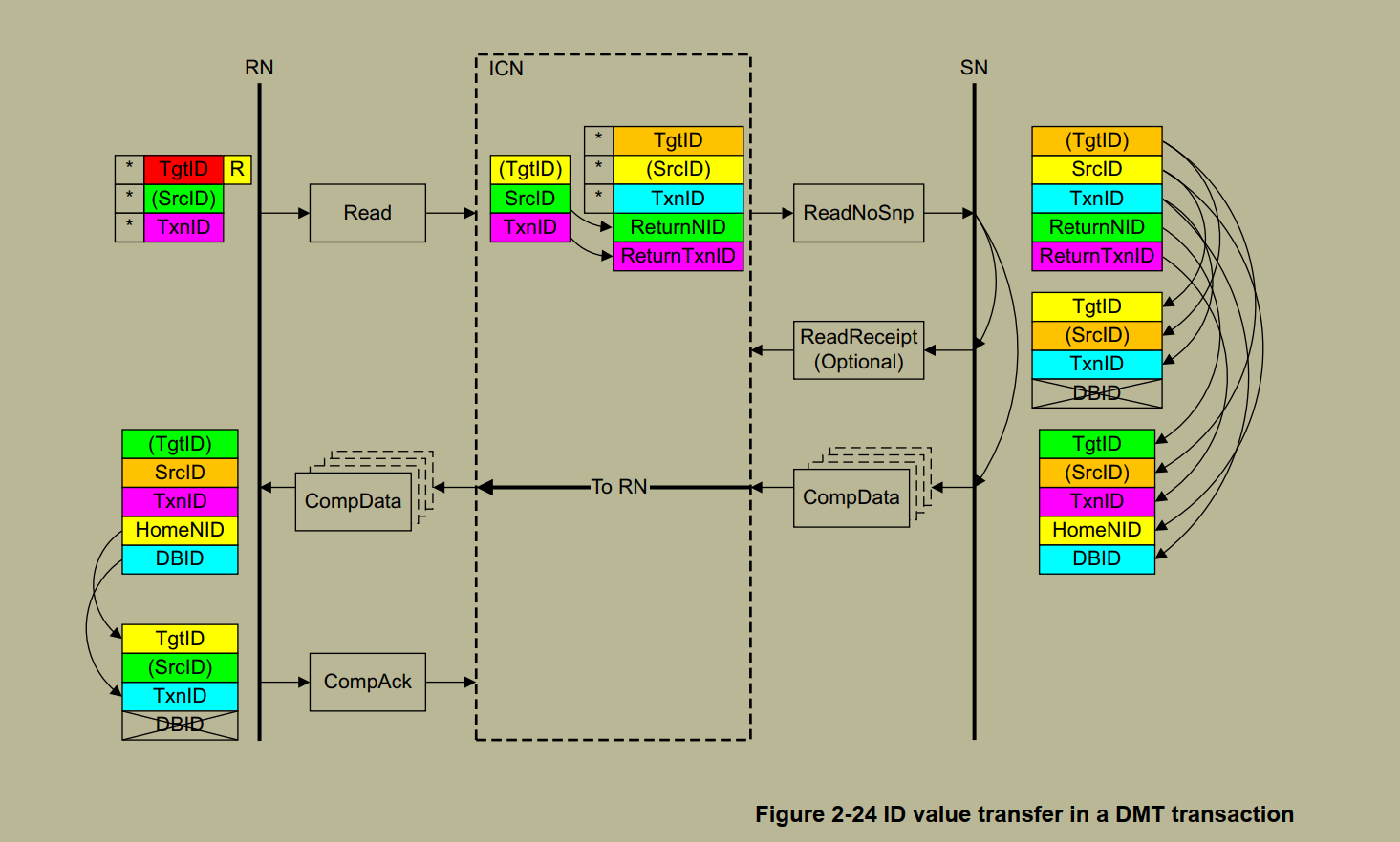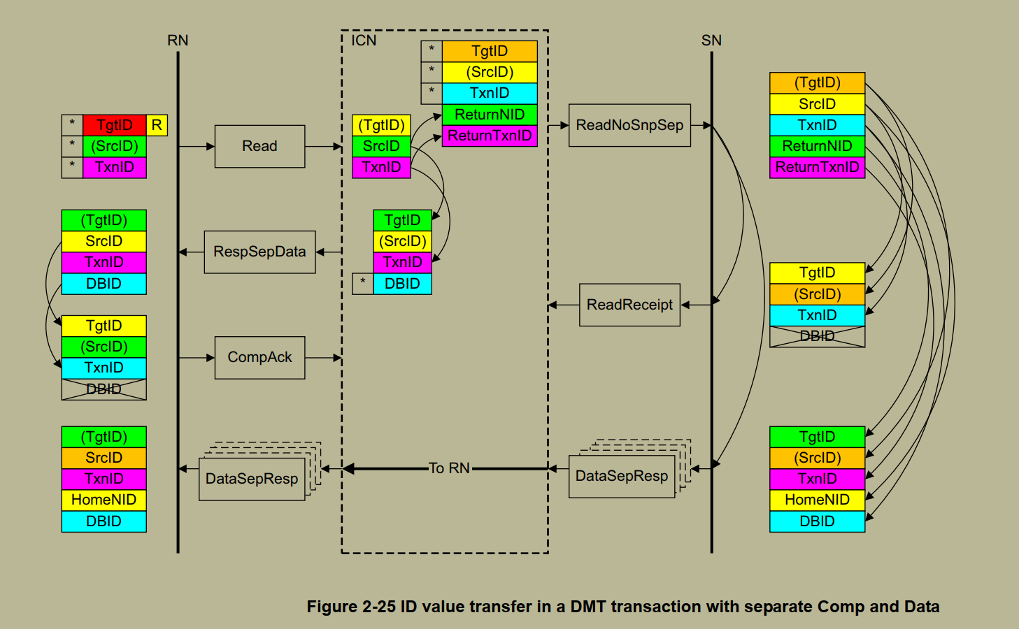 • 从 HN 到 SN 的 ReadNoSnp 和 ReadNoSnpSep 的 ReturnTxnID。
