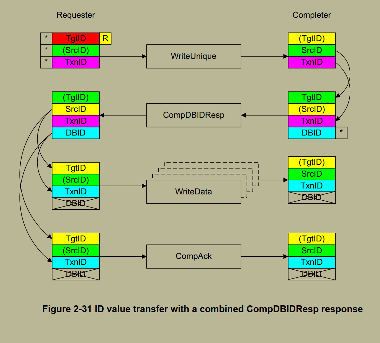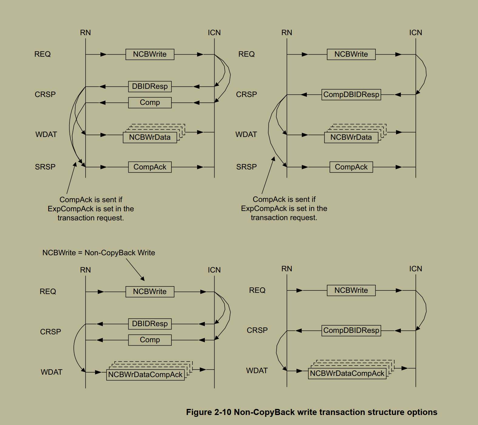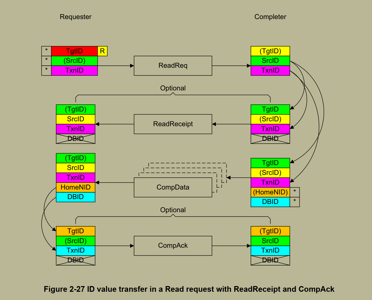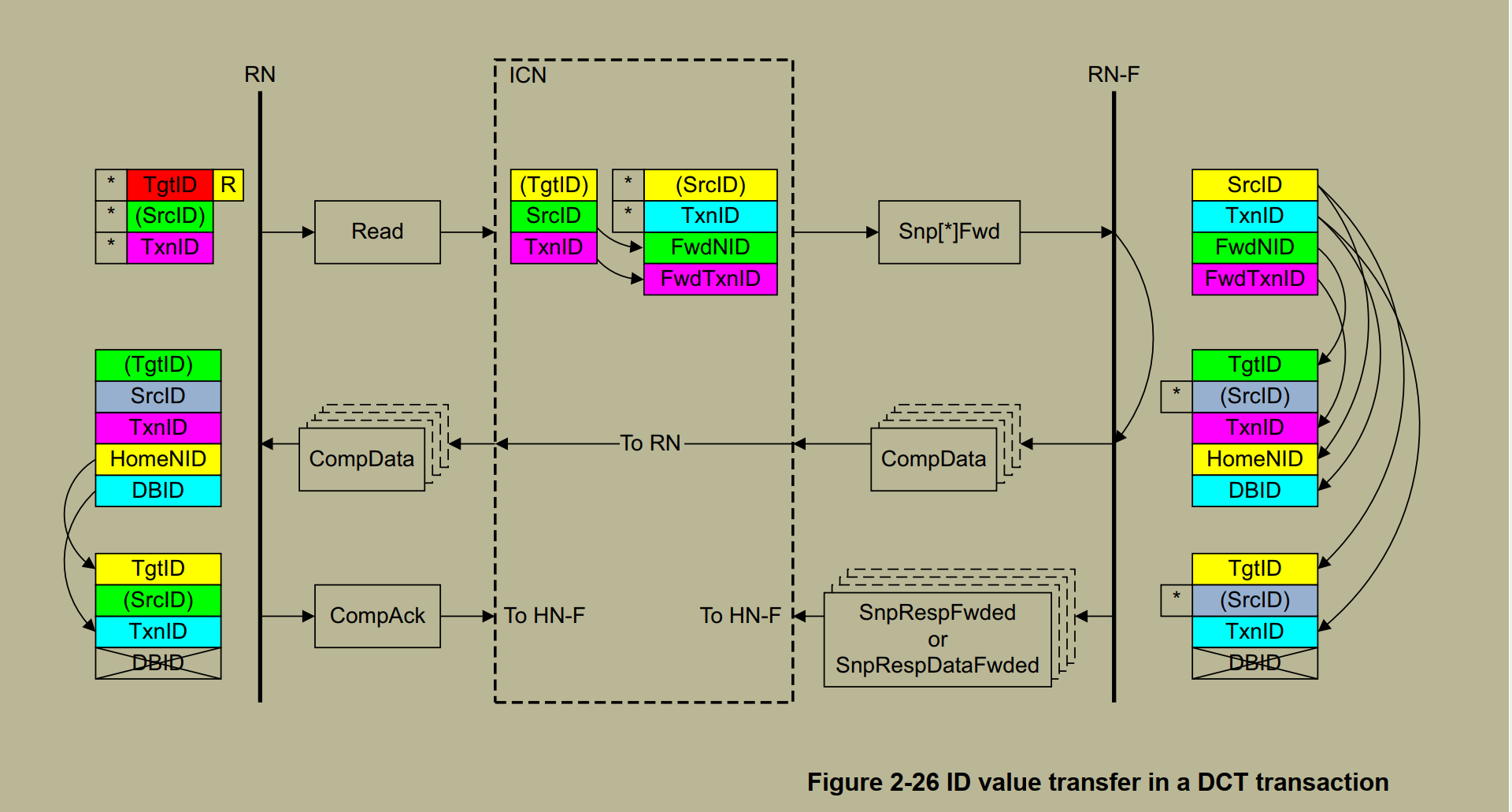 • 从 HN 到 SN 的 ReadNoSnp 和 ReadNoSnpSep 的 ReturnTxnID。