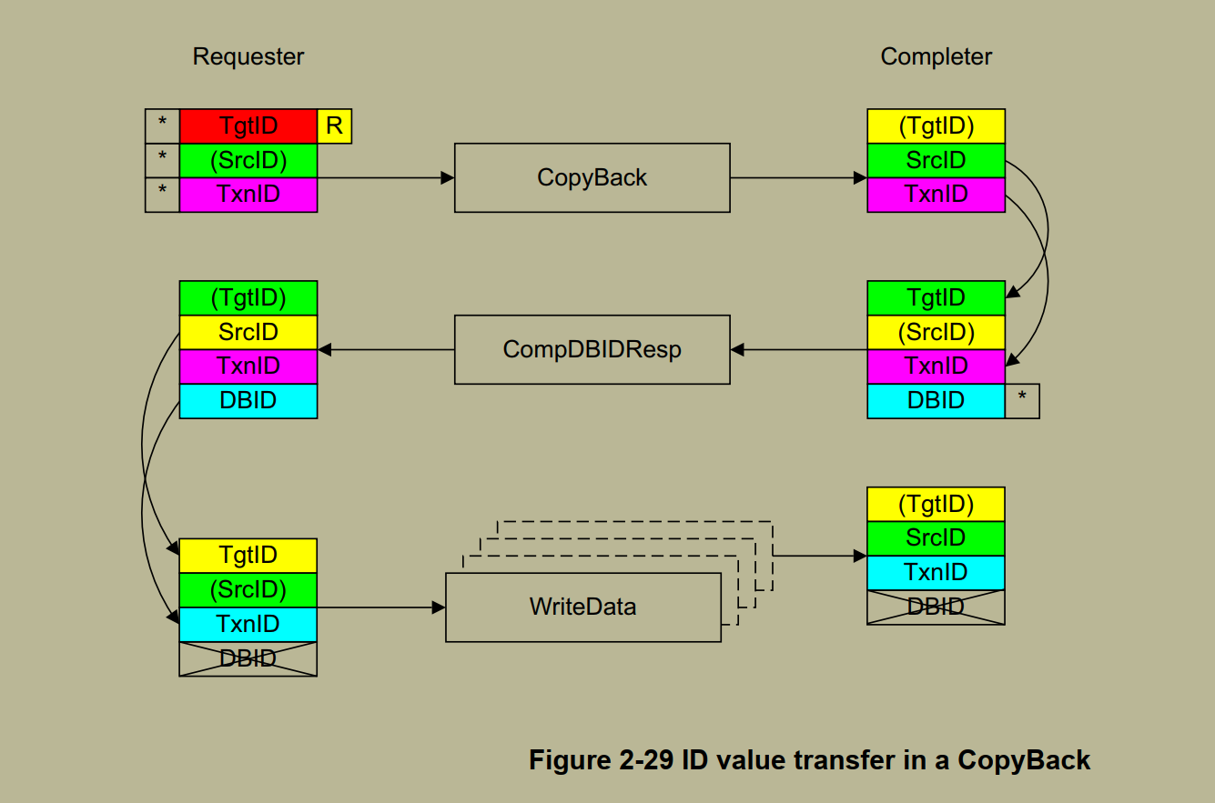当完成者给出 RetryAck 响应时,它负责记录请求来自何处,由请求的 SrcID 确定。完成者还负责确定并记录处理该请求所需的协议信用类型。RetryAck 中的 PCrdType 字段编码了将由完成者授予的协议信用类型。当所需资源在稍后的时间点可用时,完成者必须使用 PCrdGrant 响应向请求者发送 P-Credit。PCrdGrant 响应向请求者指示可以重试该事务。