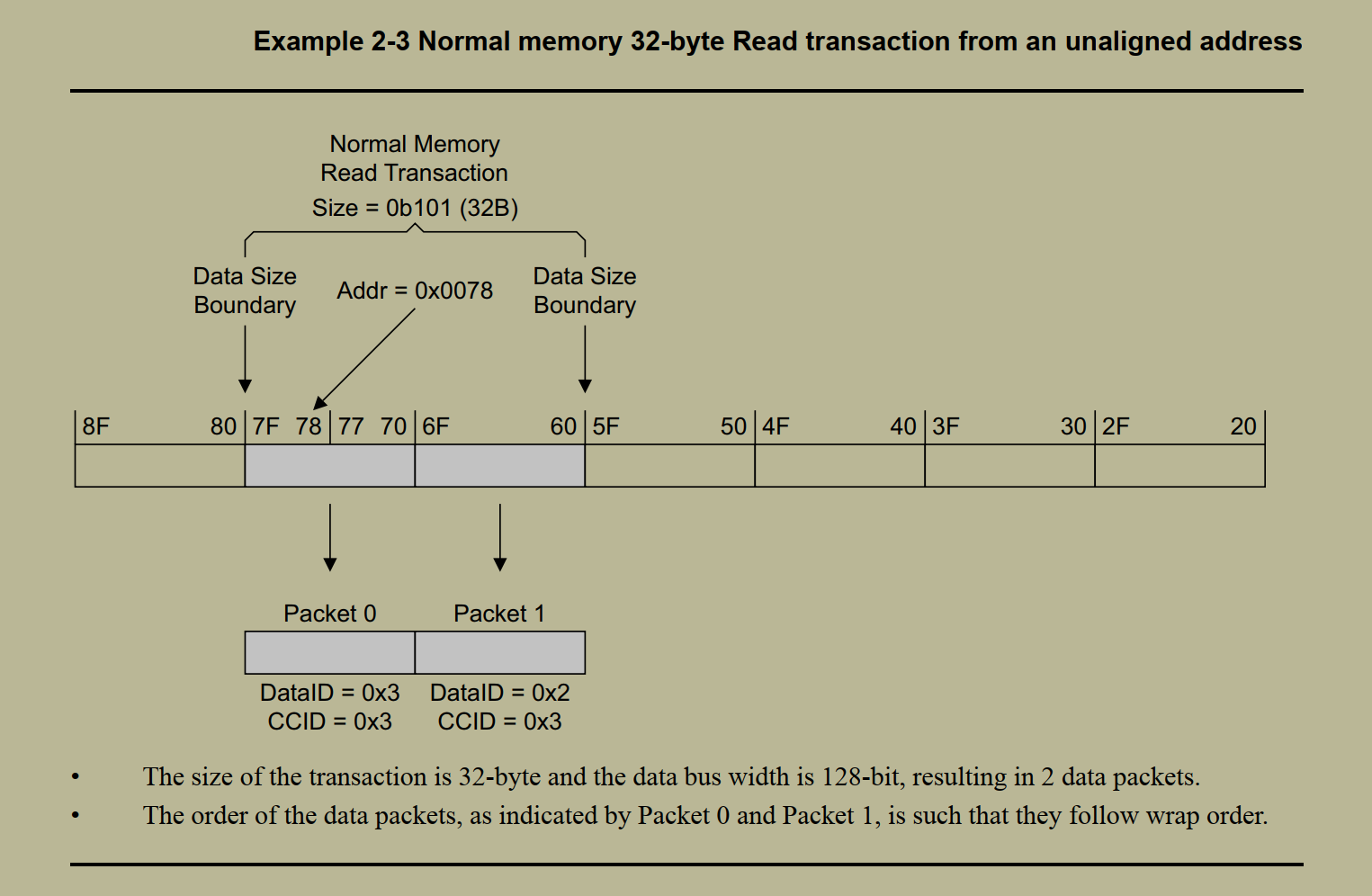 示例 2-3 从非对齐地址进行的普通内存 32 字节读事务