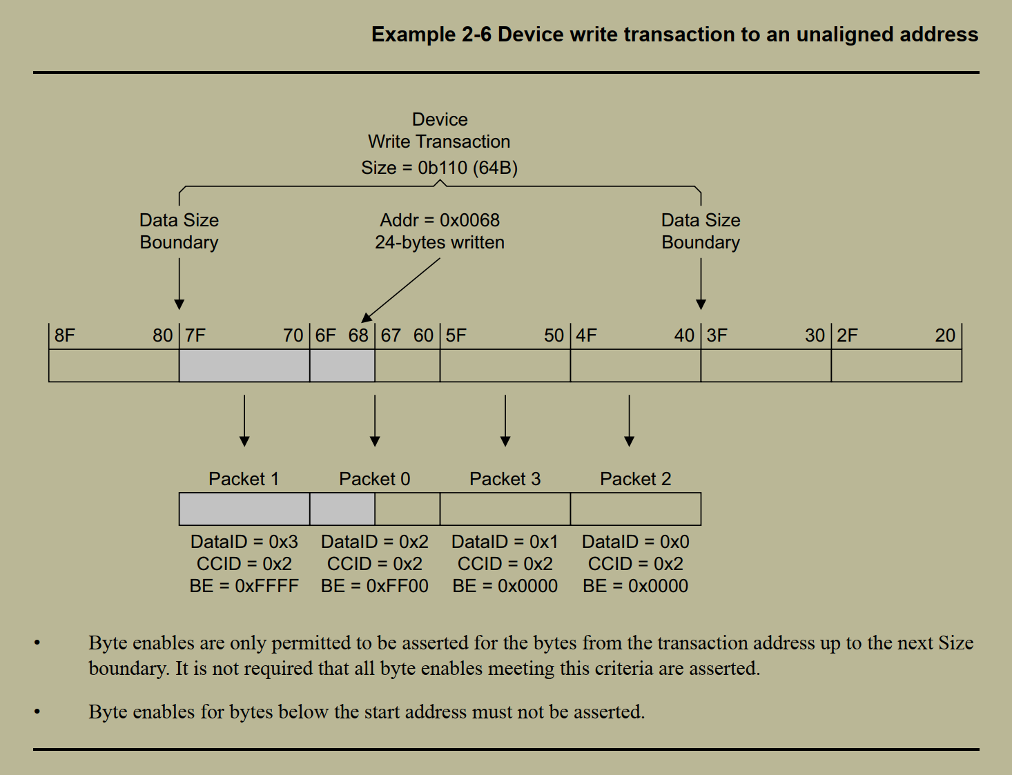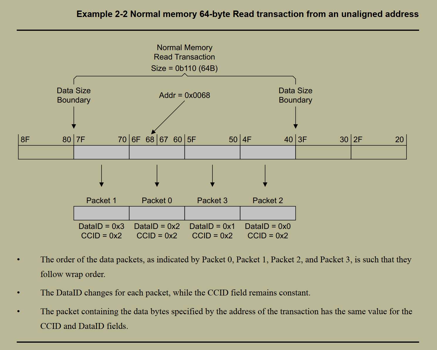 示例 2-2 从非对齐地址进行的普通内存 64 字节读事务