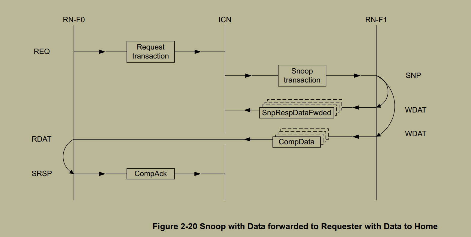 | RN 通道指定 | TXREQ。出站请求。 | TXDAT。出站数据。 用于写数据、原子数据、监听数据、转发数据。 | TXRSP。出站响应。 用于监听响应和完成确认。 | RXRSP。入站响应。 用于来自完成者的响应。 | RXDAT。入站数据。 用于读数据、原子数据。 | RXSNP。入站监听请求。 |
