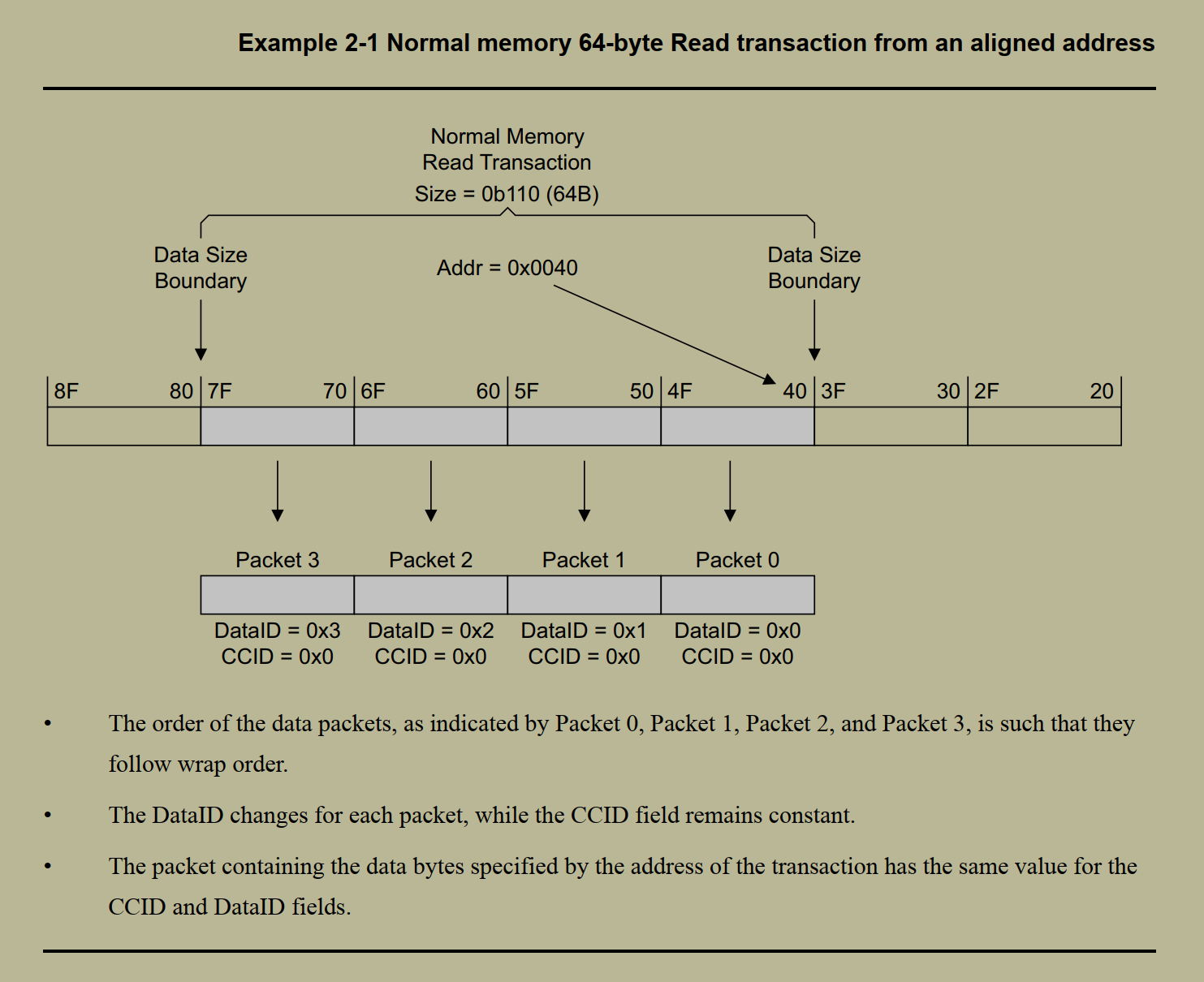 示例 2-1 从对齐地址进行的普通内存 64 字节读事务