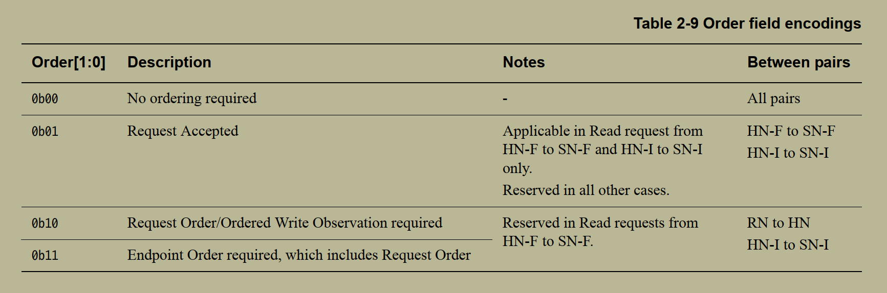 | Order | 是 | 排序要求。确定此请求相对于来自同一代理的其他请求的排序要求。参见第 2-99 页的排序。 |