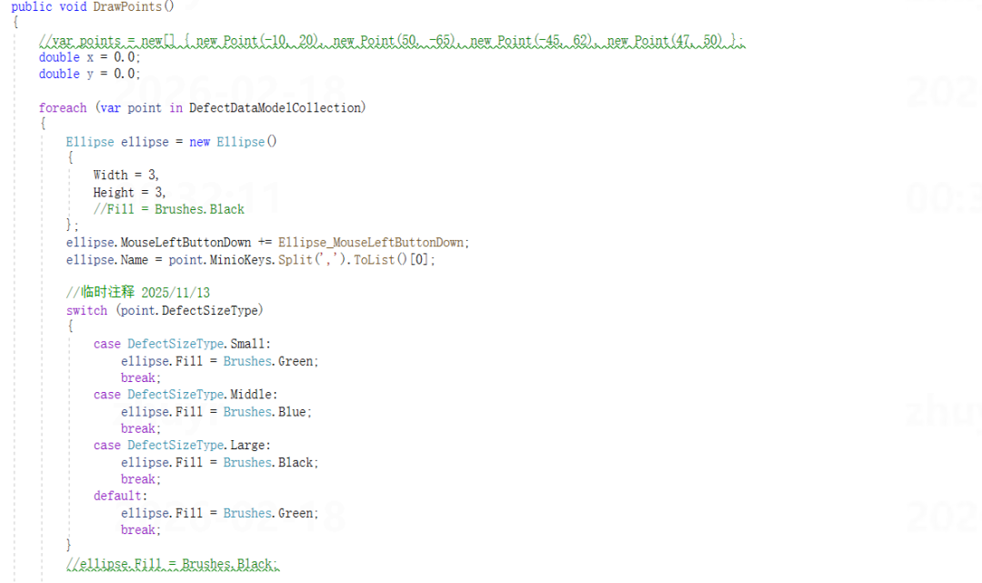 这里的核心思路是将缺陷点位拉伸 到canvas对应的区域里面,并通过ellipse绘制出来.