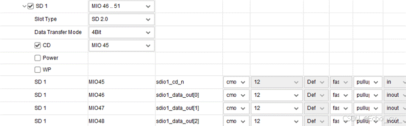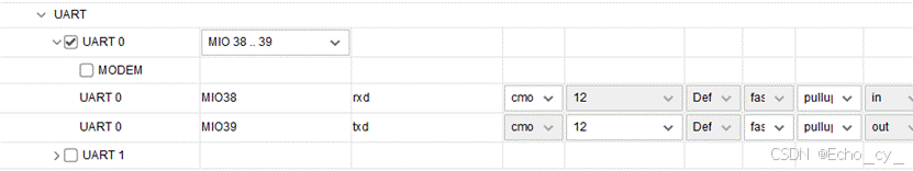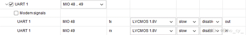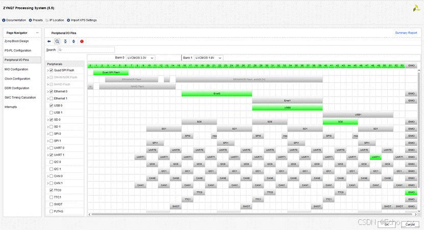 - Peripheral IO Pins 页面可以为不同的 I/O 外设选择对应的MIO/EMIO引脚。