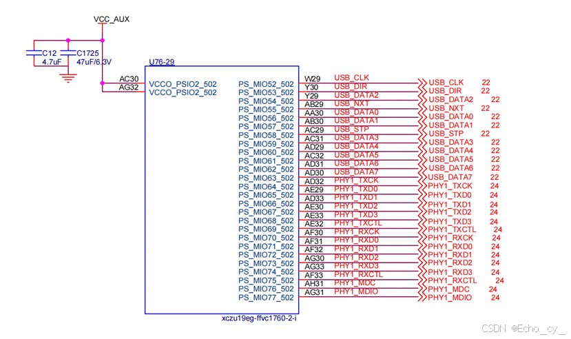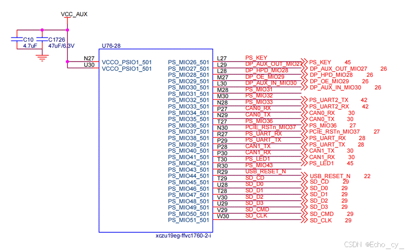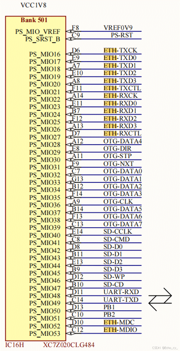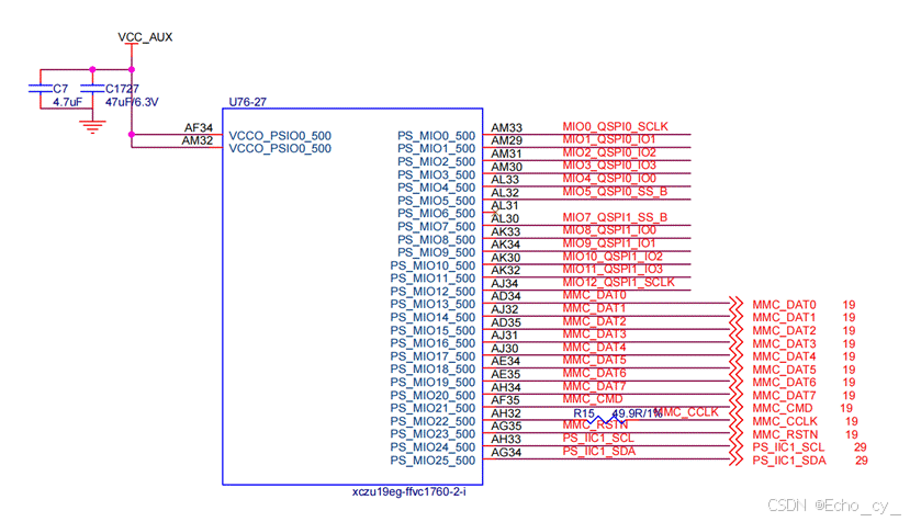 这里VCC_AUX是1.8V,可以通过MIO引脚号来区分不同的Bank。