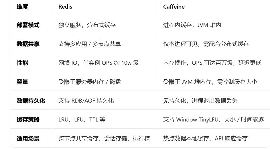 一、Redis vs Caffeine 核心对比