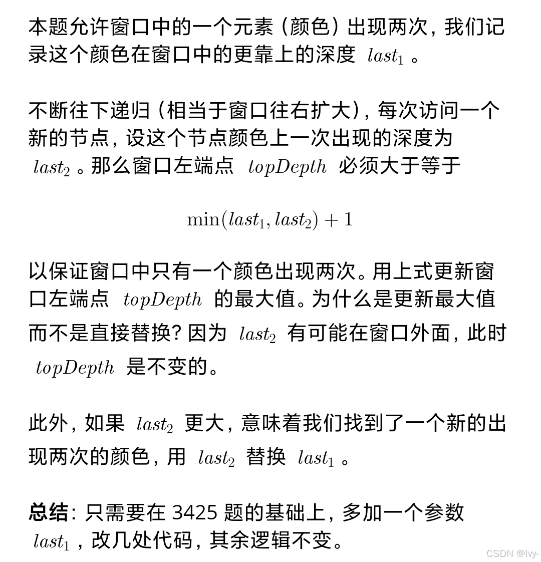 ++top_depth = max(top_depth, min(last1, last2)); // 相较 3425 题,维护窗口左端点的逻辑变了++