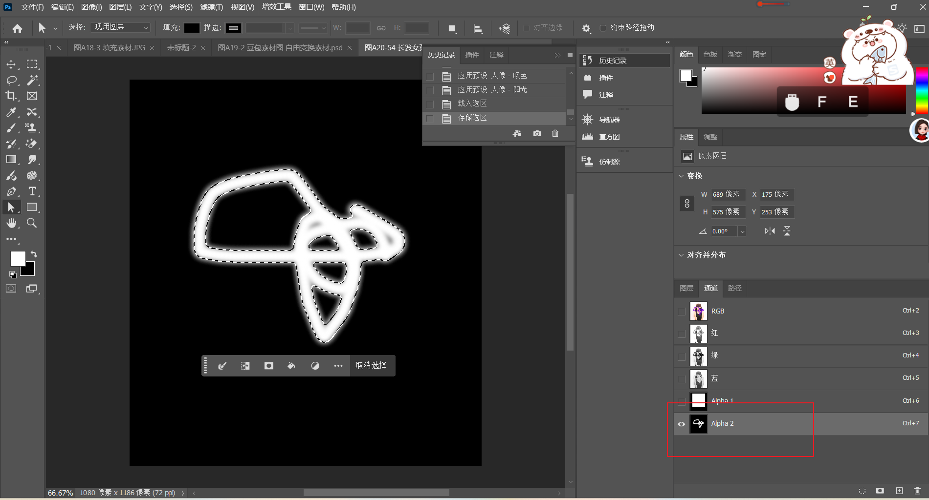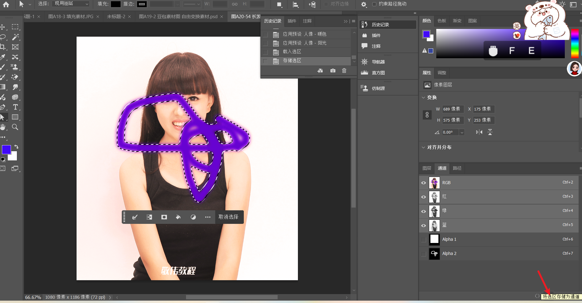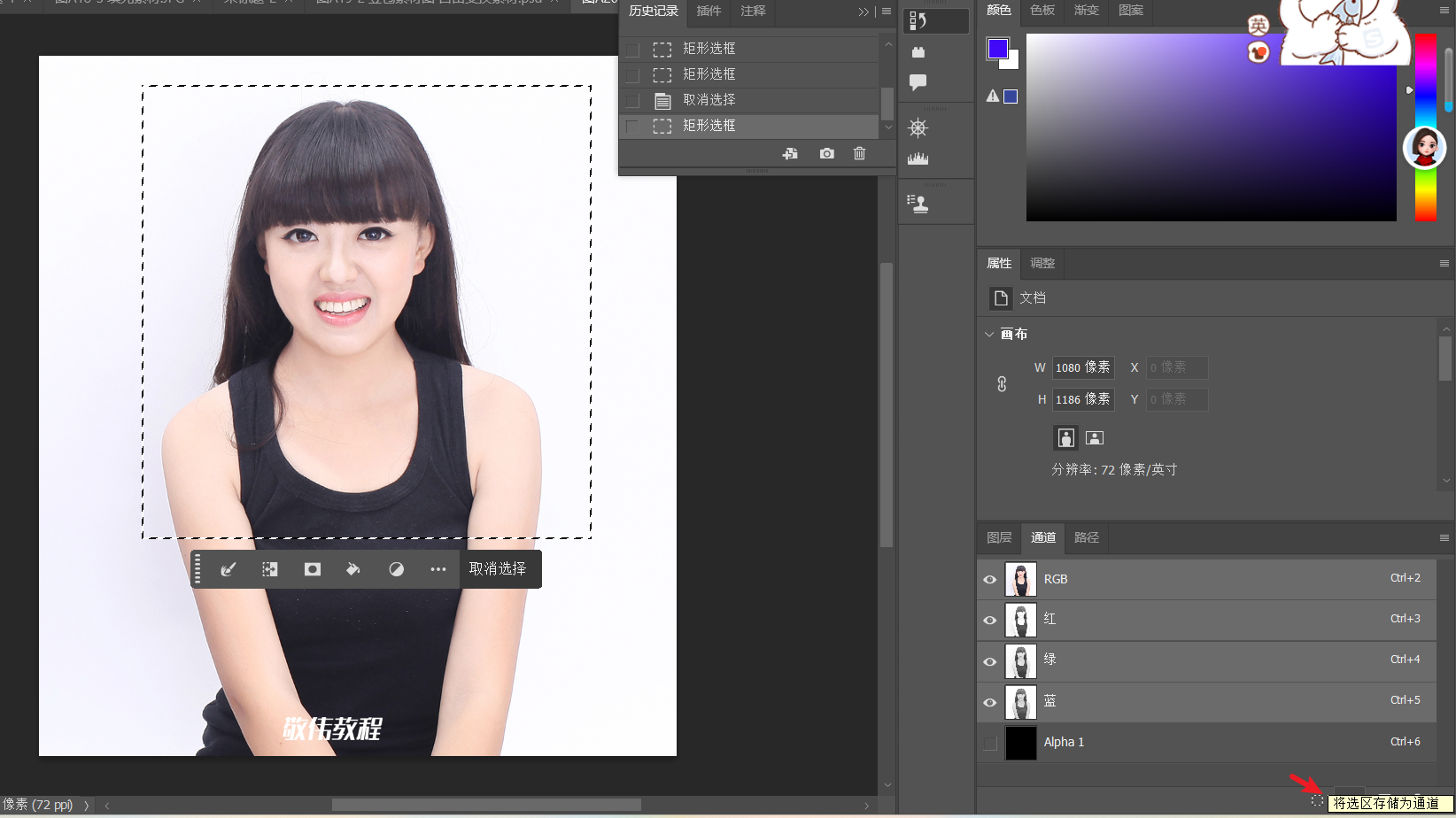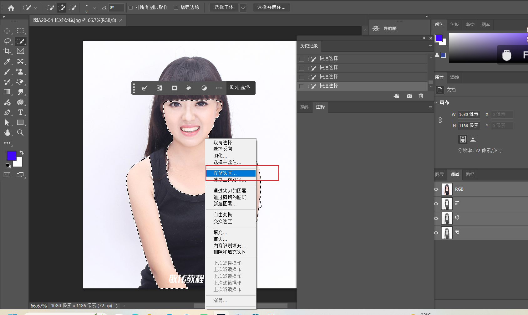 快速选择工具 选择选区 ---- 存储选区