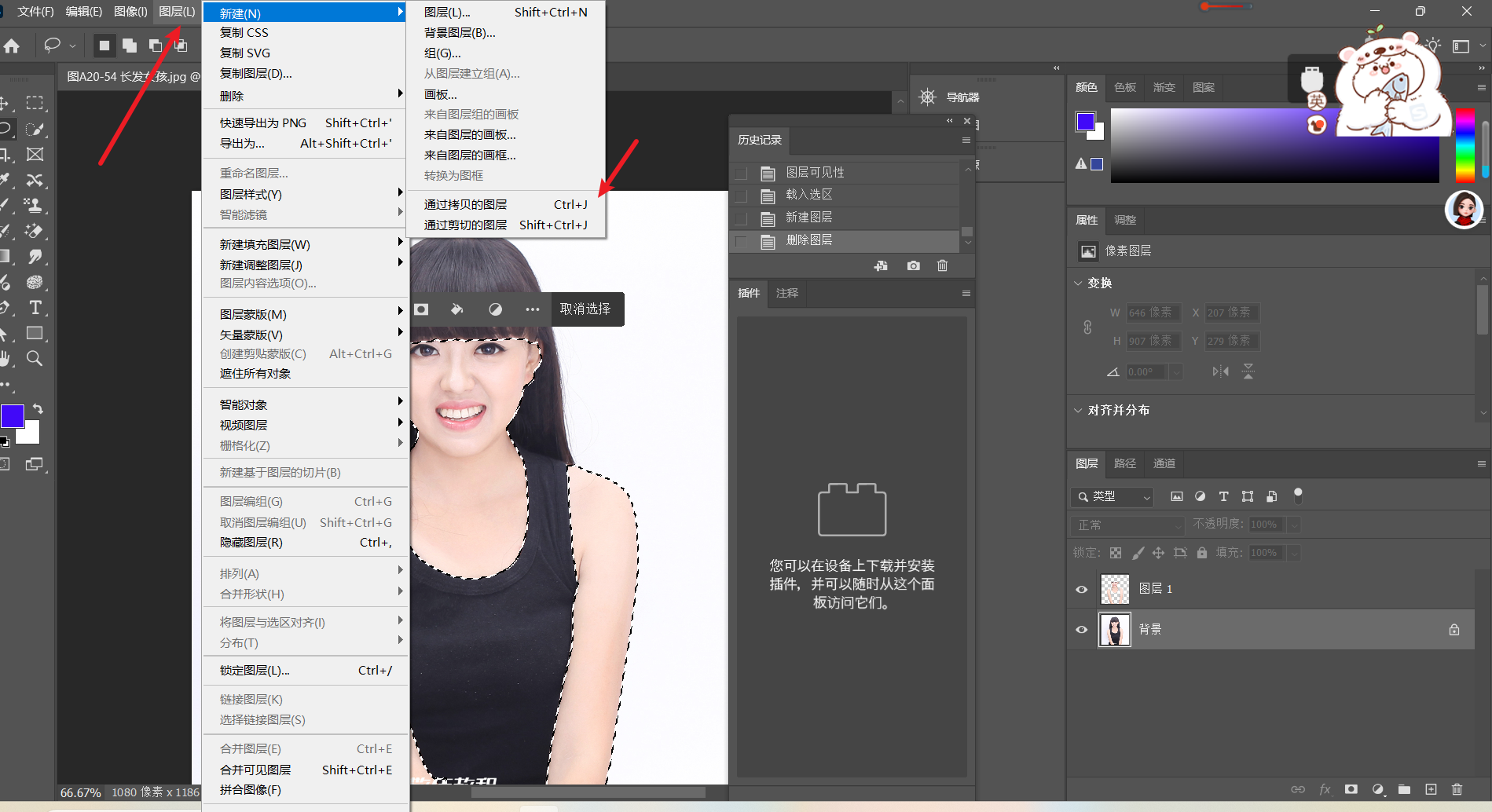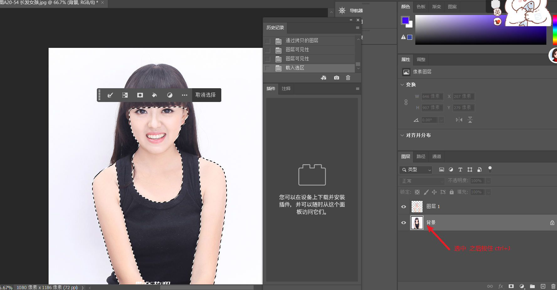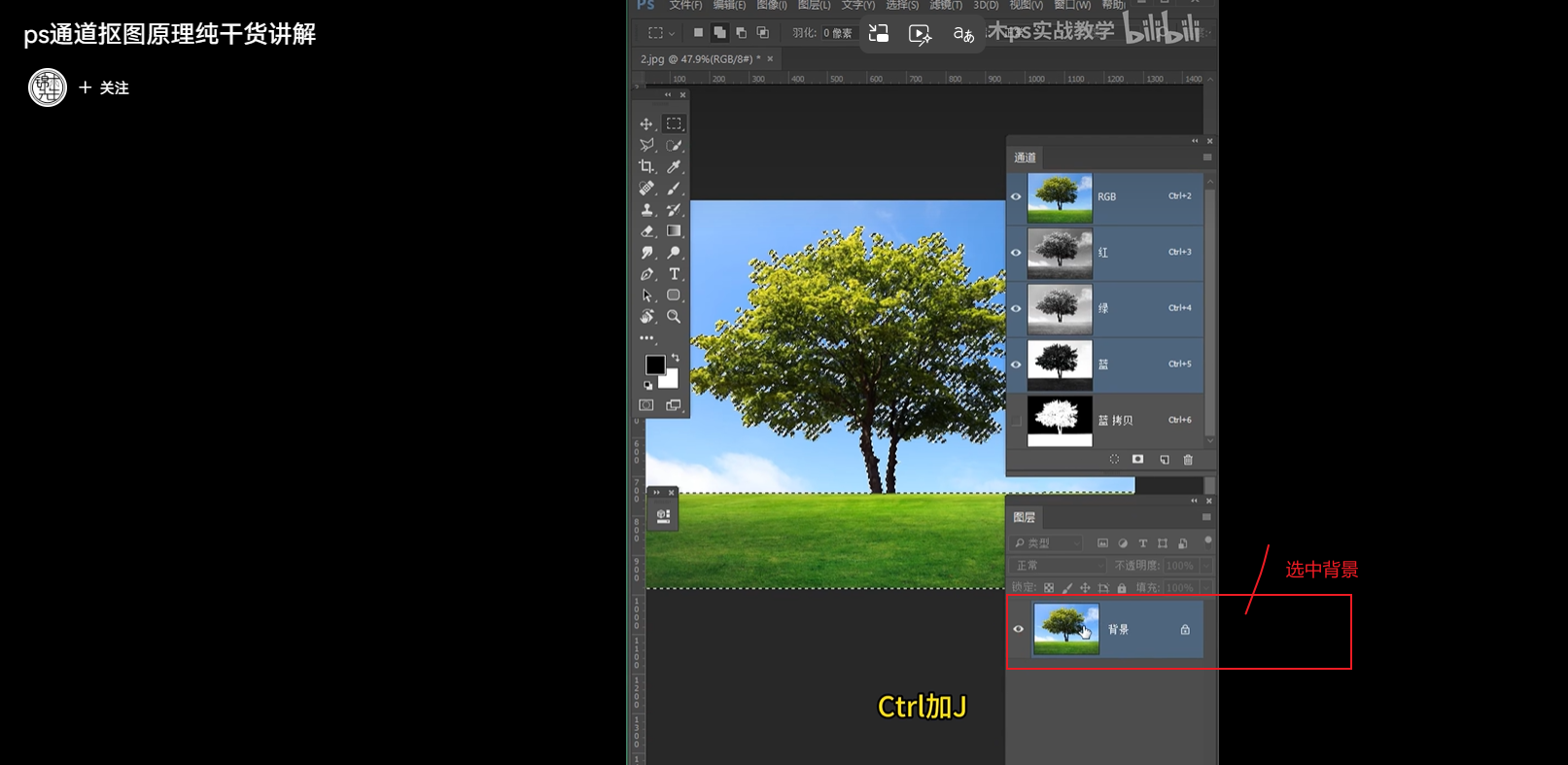 2.切换到图层 选中背景 ctrl + j