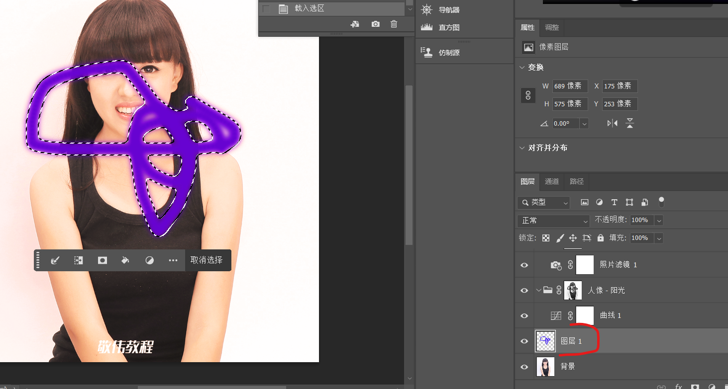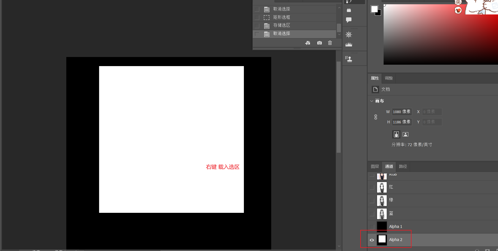 1.点击 右下角载入选区