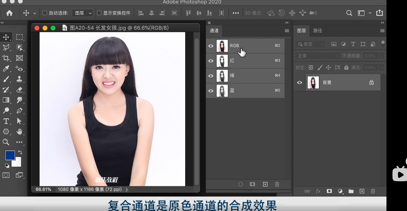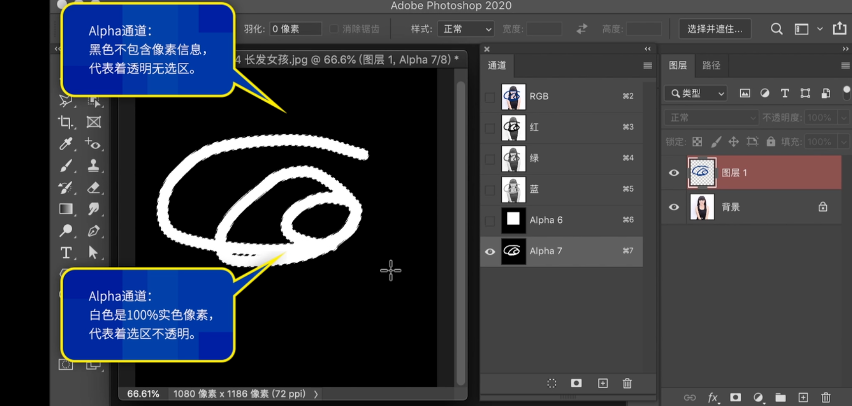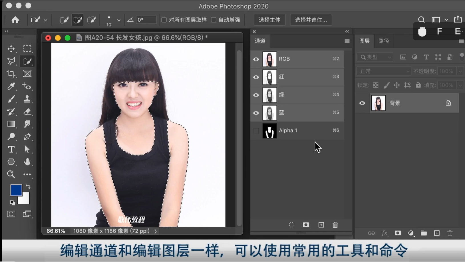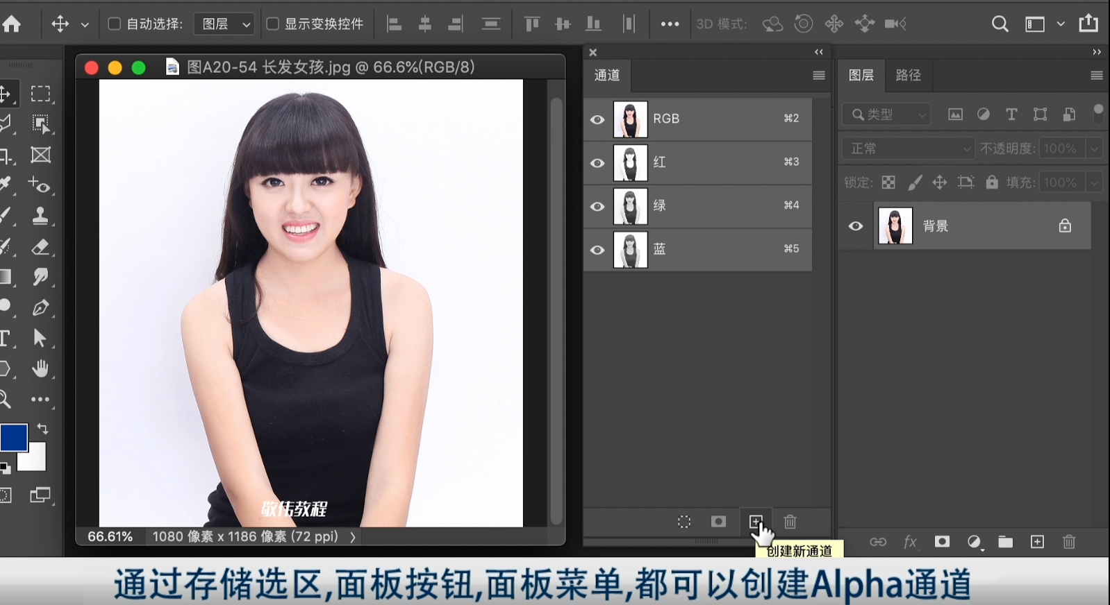 1.点右下角小圆圈 载入选区------2.点一下RGB 通道