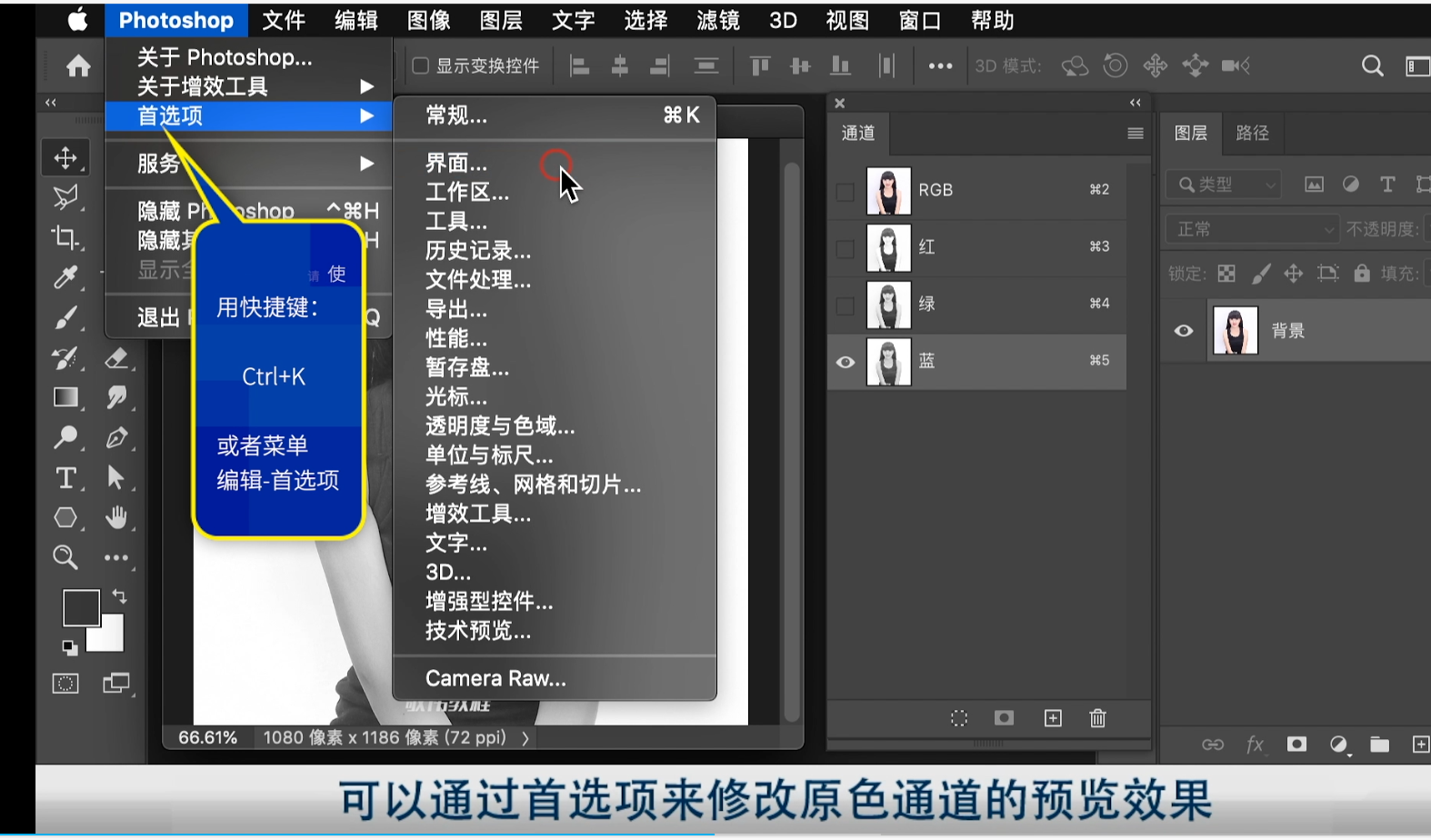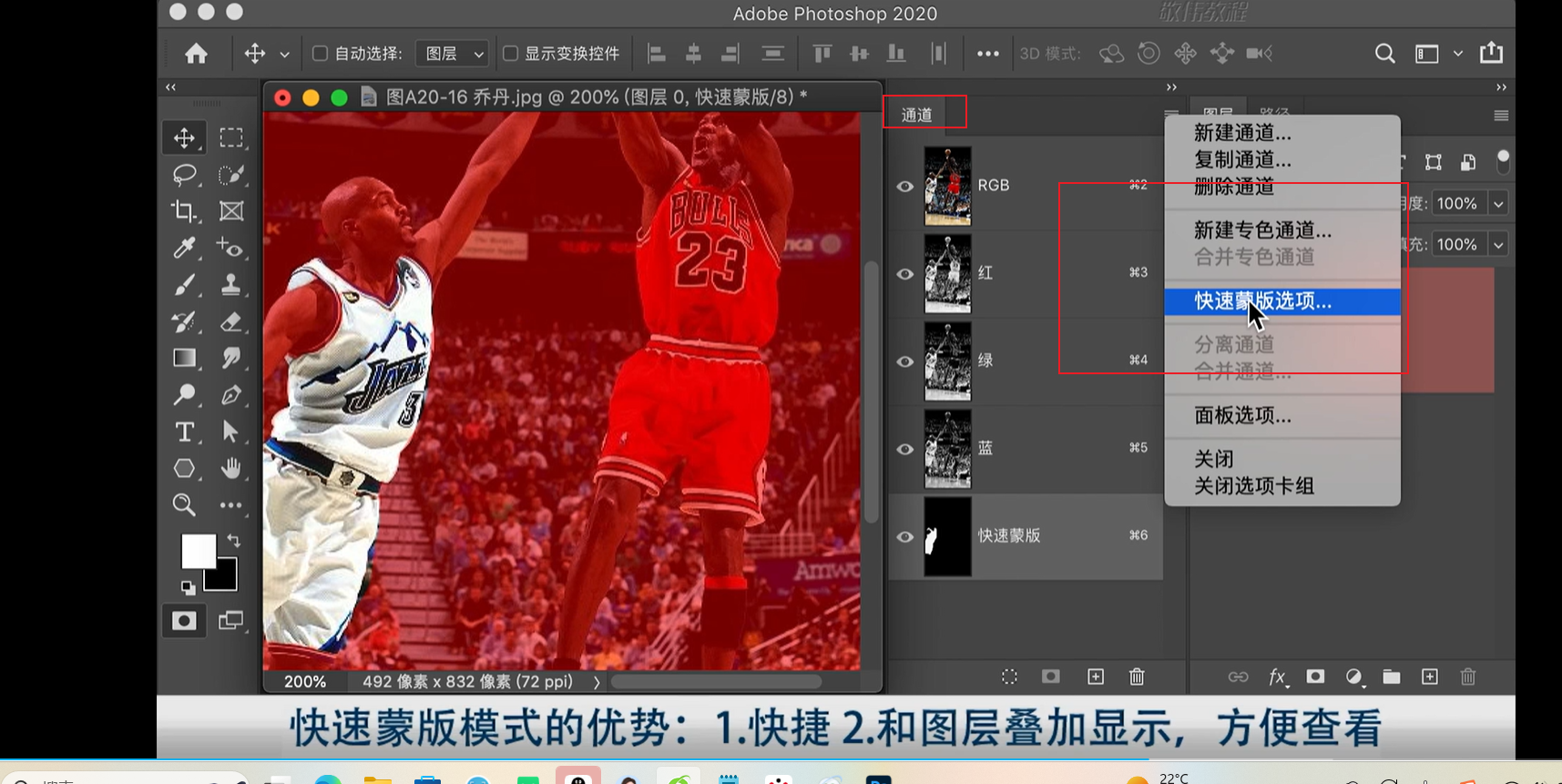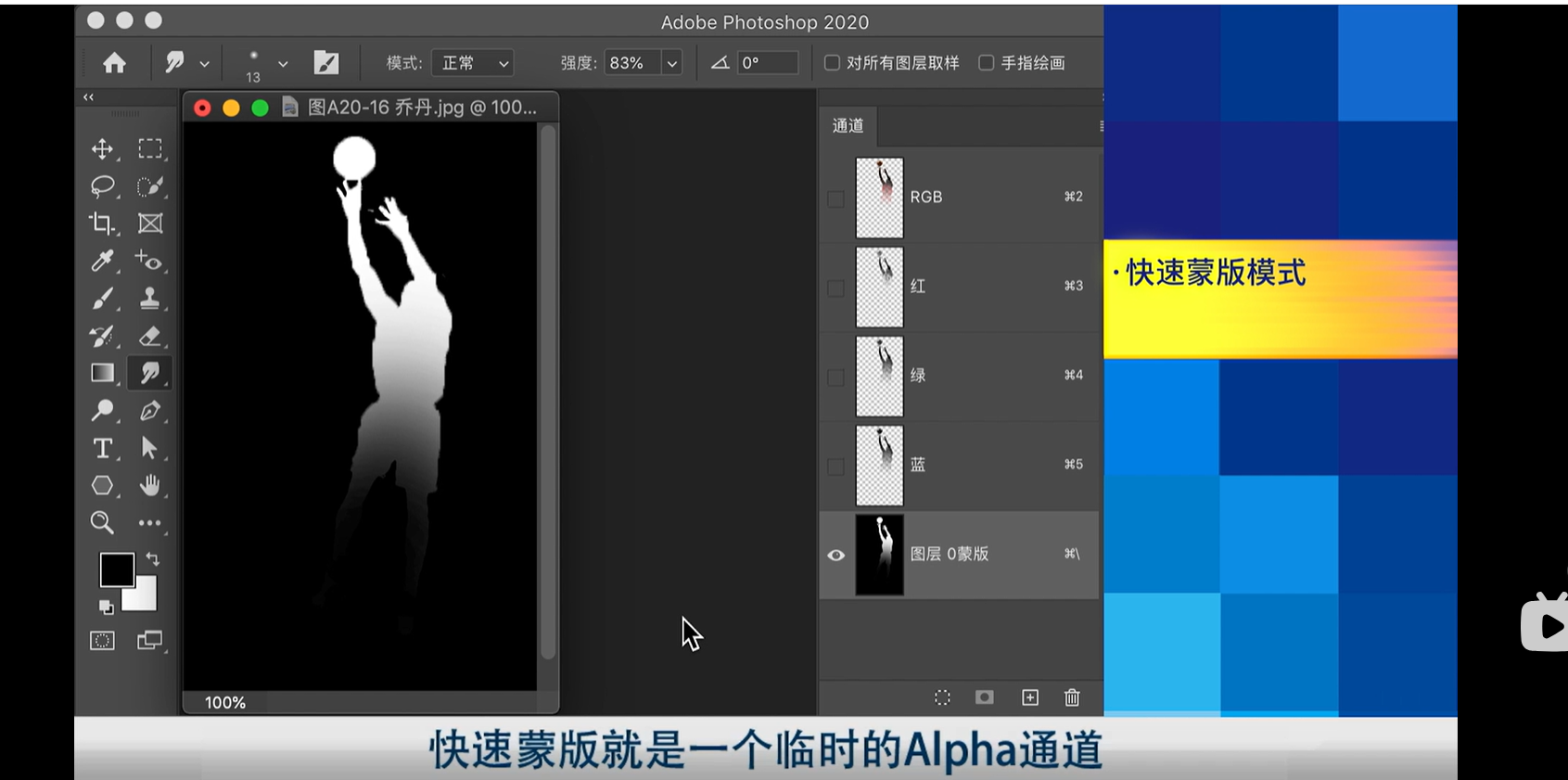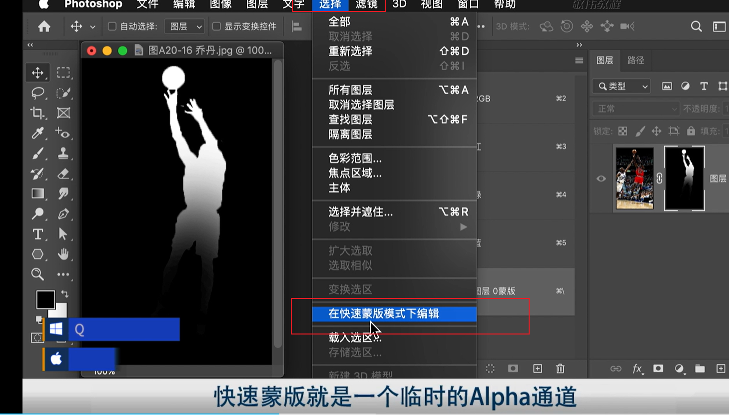 通道菜单中可以找到快速蒙版选项