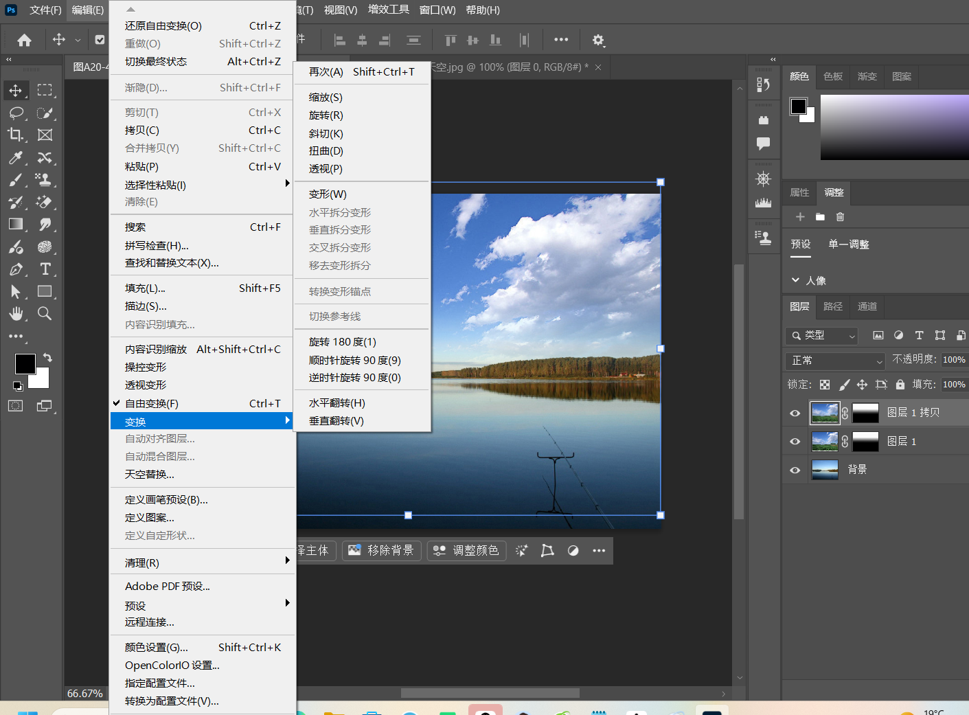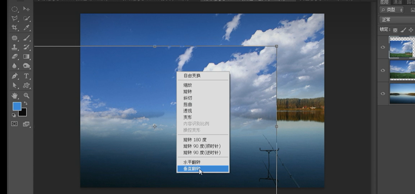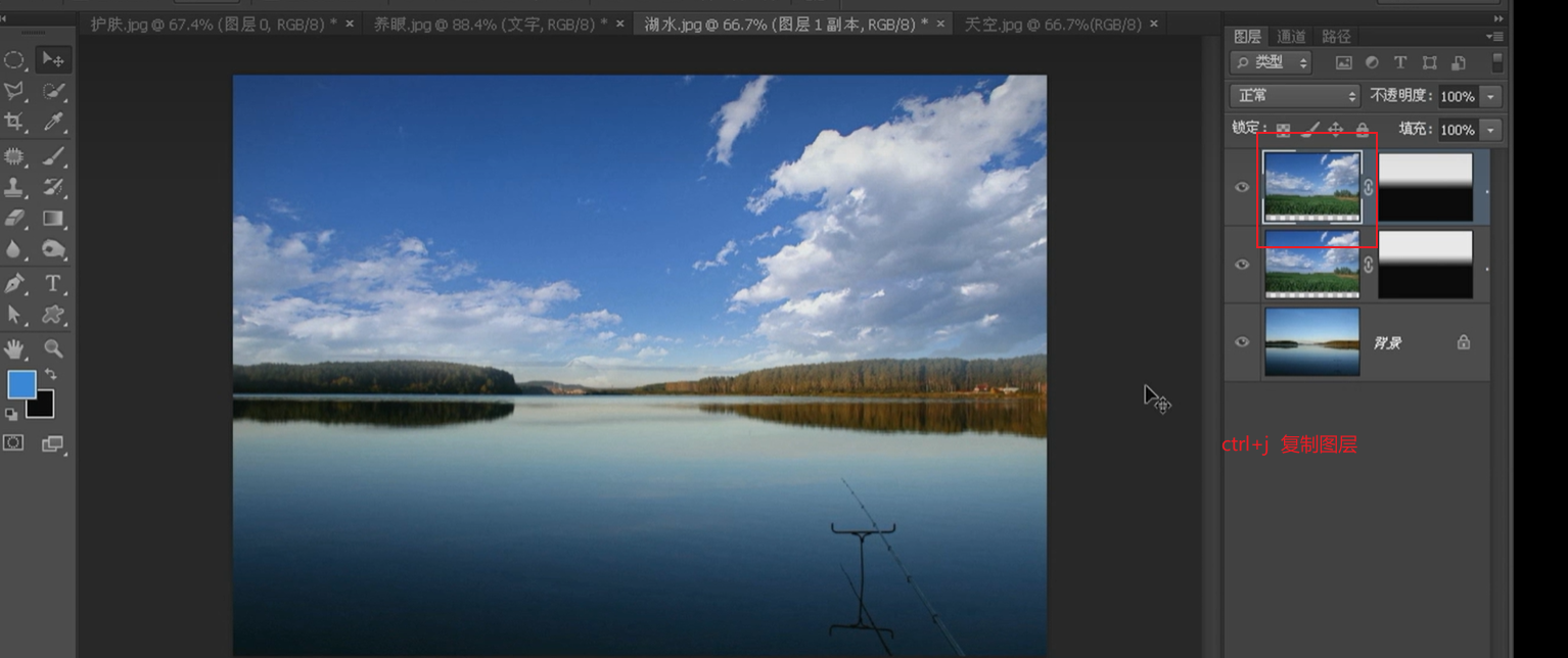 天空 拖动到湖水
