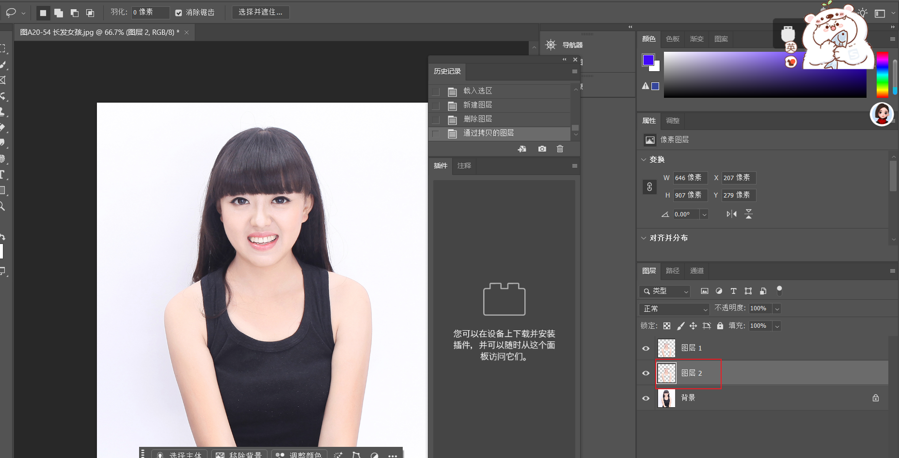 图片会以智能对象形式出现在画布上,并自动创建一个新图层。