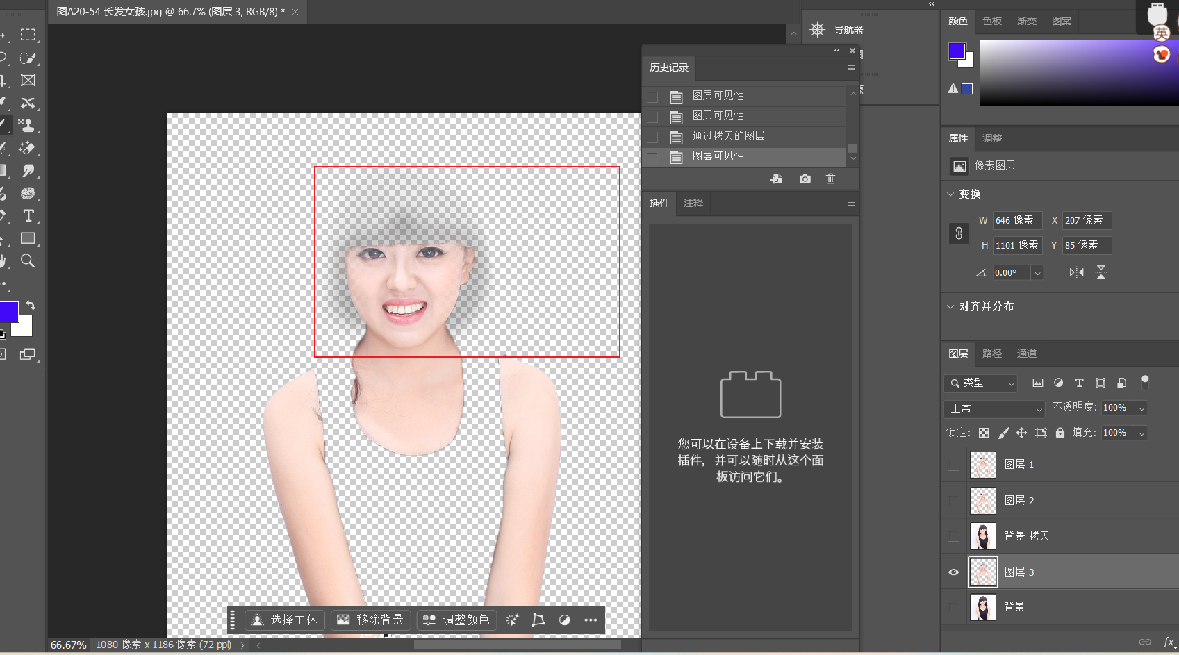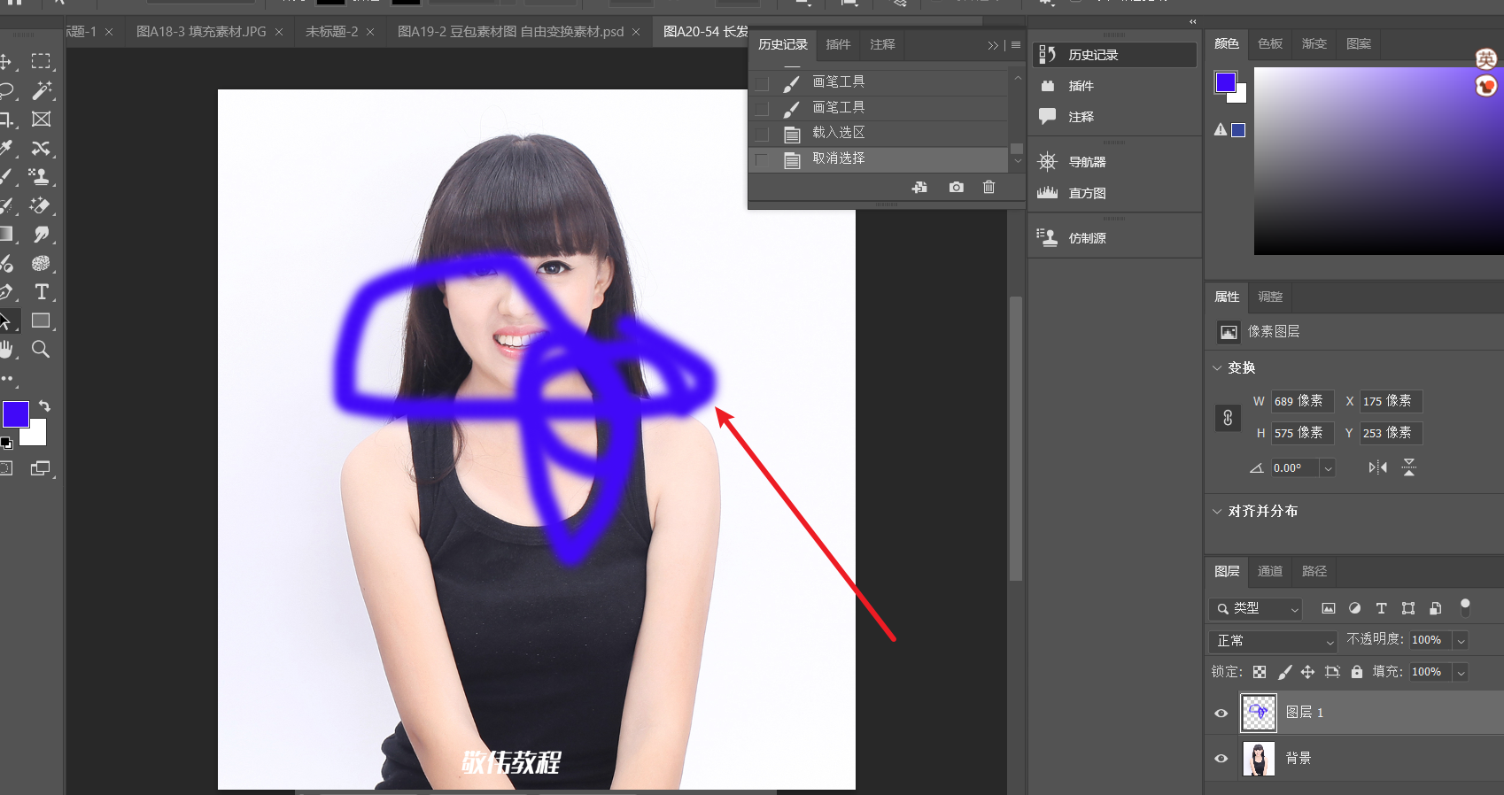 用画笔对选区进行修改