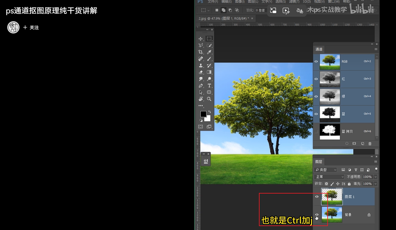 切换到图像 ,选中 背景图层,ctrl +j
