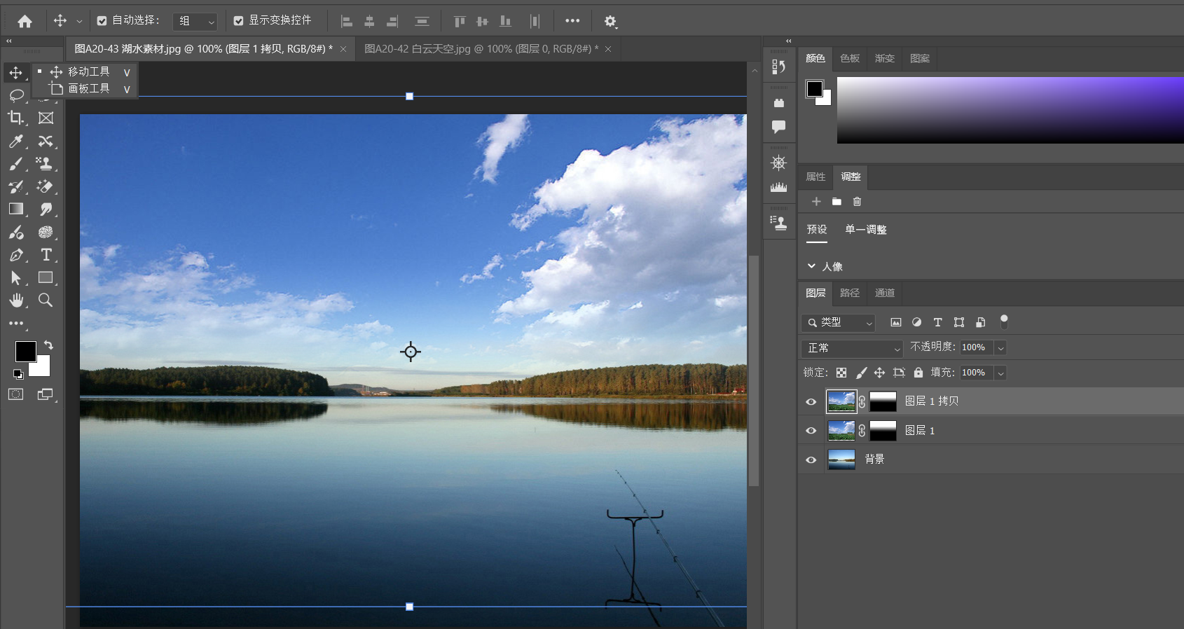总结:最推荐的方法是使用 移动工具(V) 直接从源图片窗口拖拽到目标窗口,操作简单、高效,且自动创建新图层,无需额外步骤。