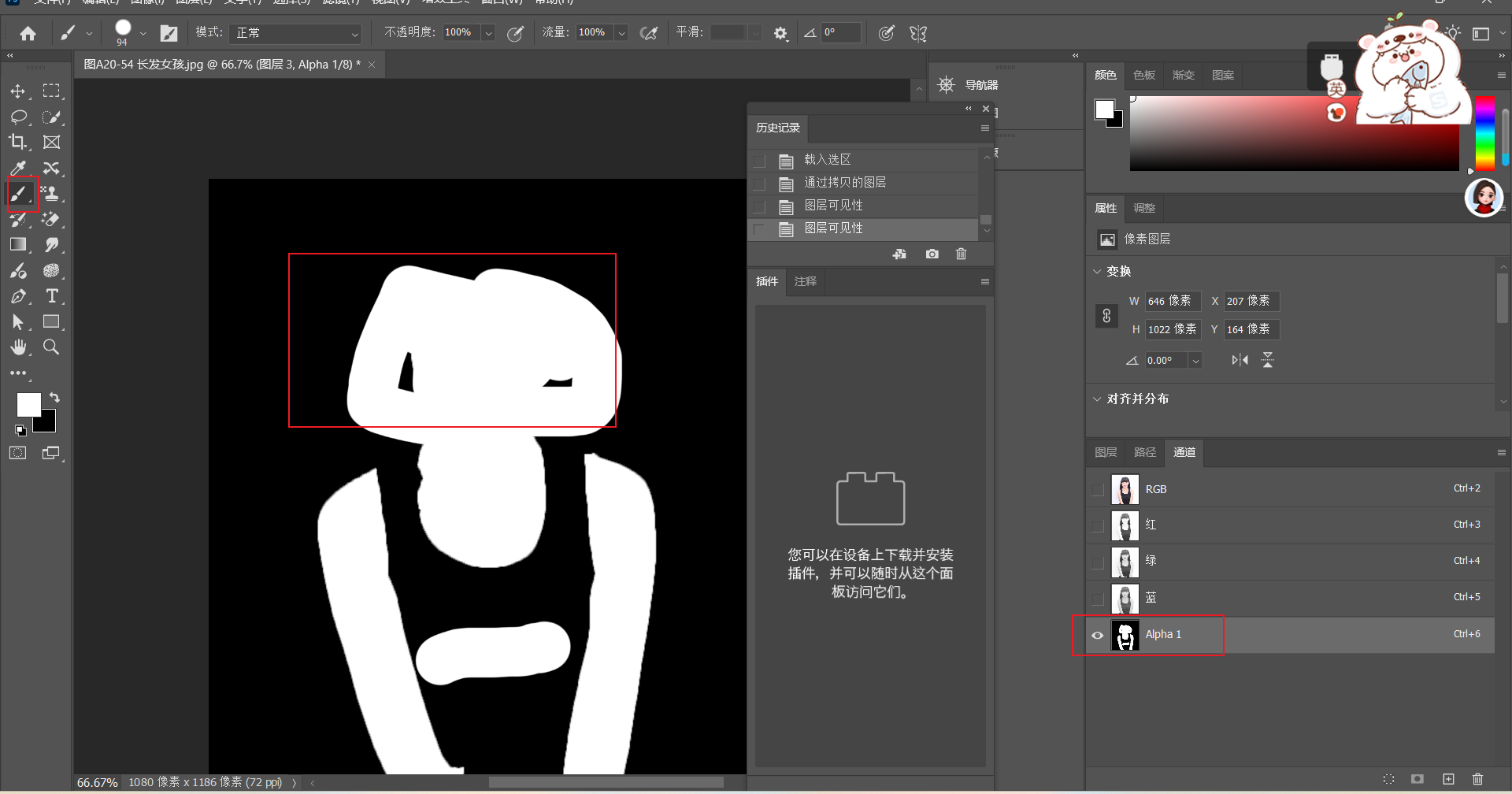 也可以用画笔对通道进行修改