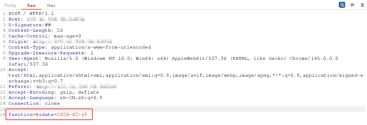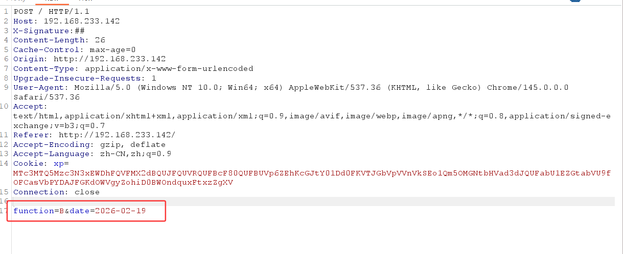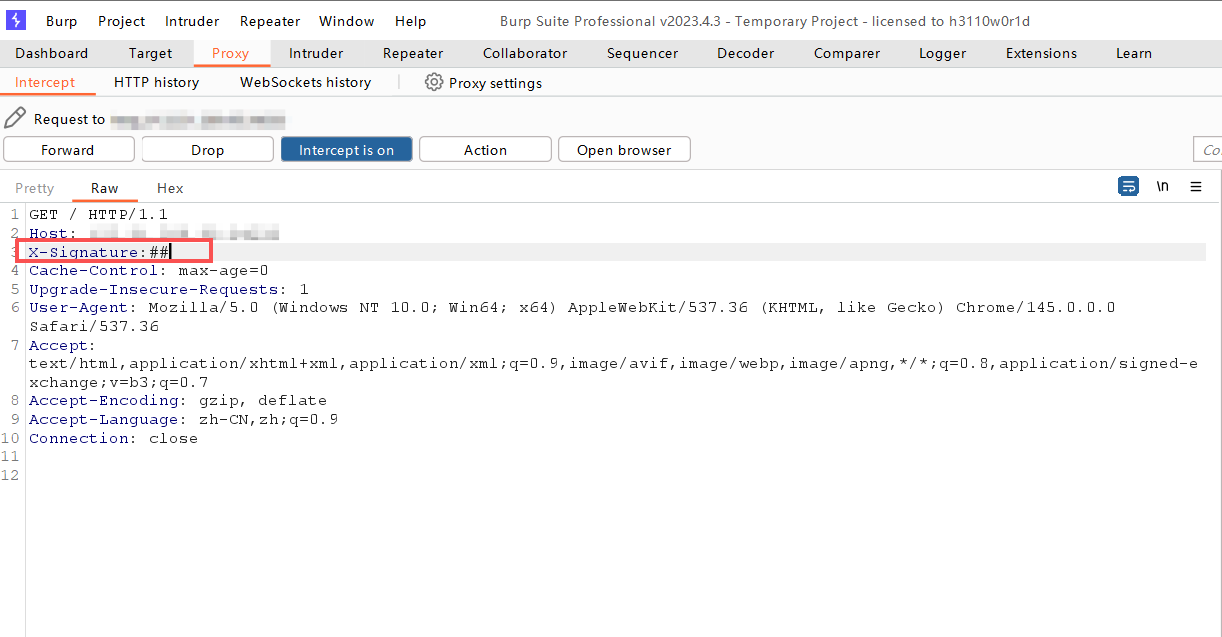 所以我们直接抓包,在请求头中构造一个非法的base64字符,即可绕过签名认证,这里使用X-Signature:##
