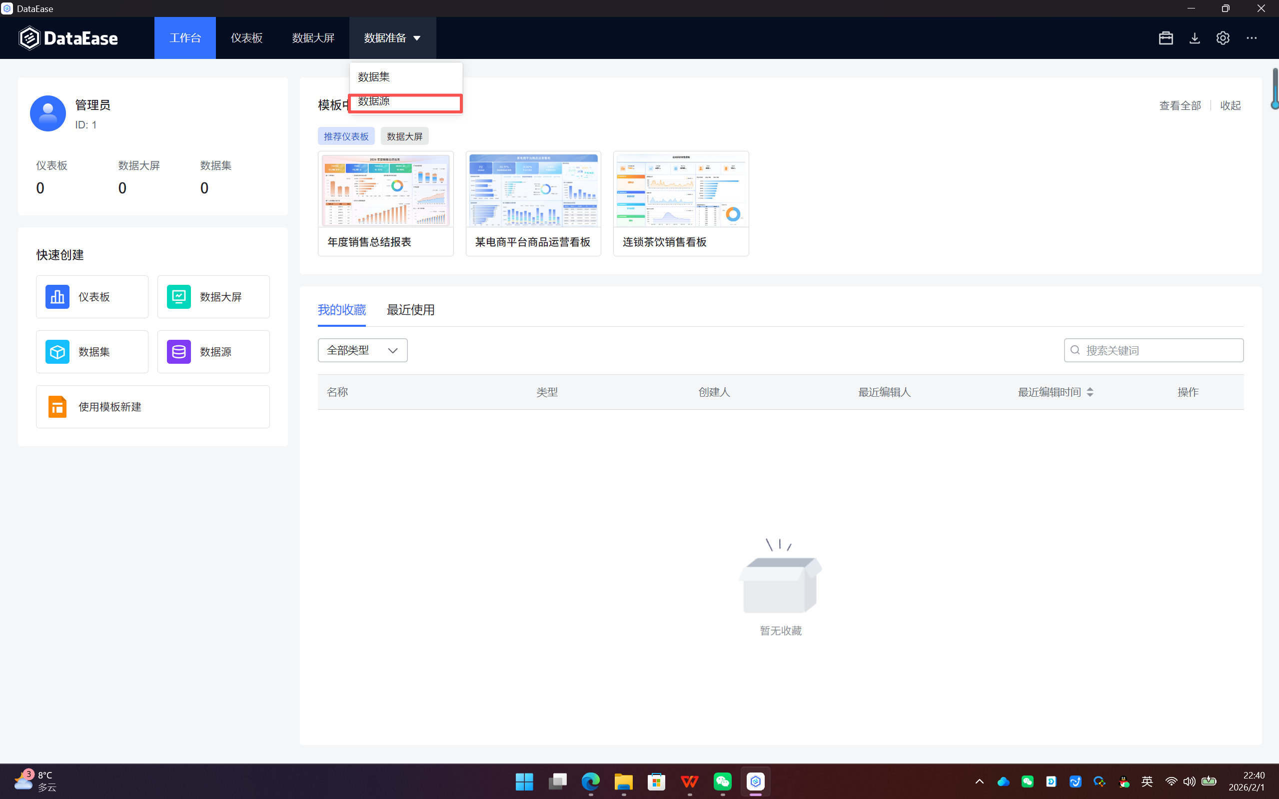 - 登录DataEase系统后,您将看到主控制台界面(见图6-2)。