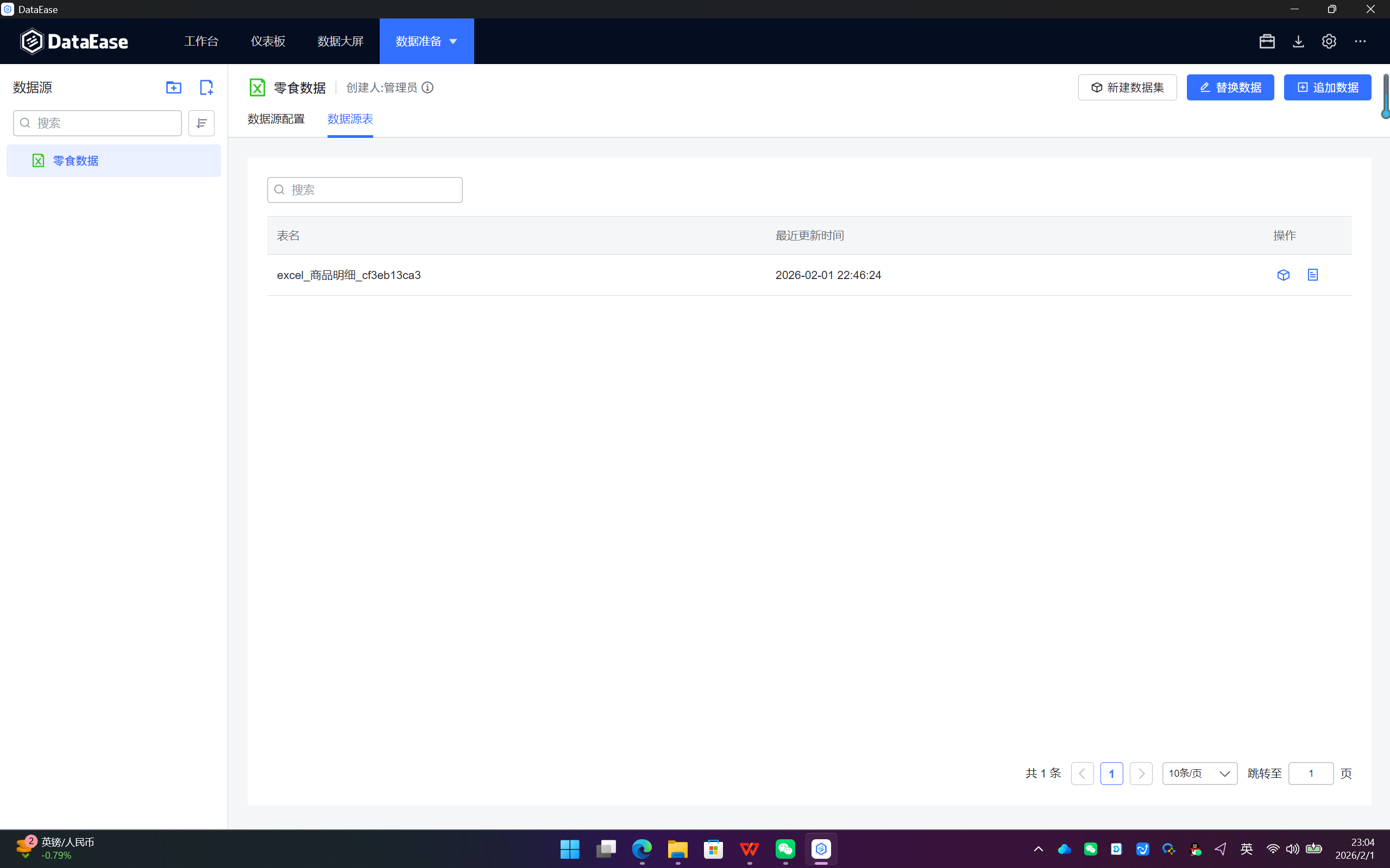 - 替换完成后,所有基于该数据源创建的数据集和图表将自动读取新的数据。