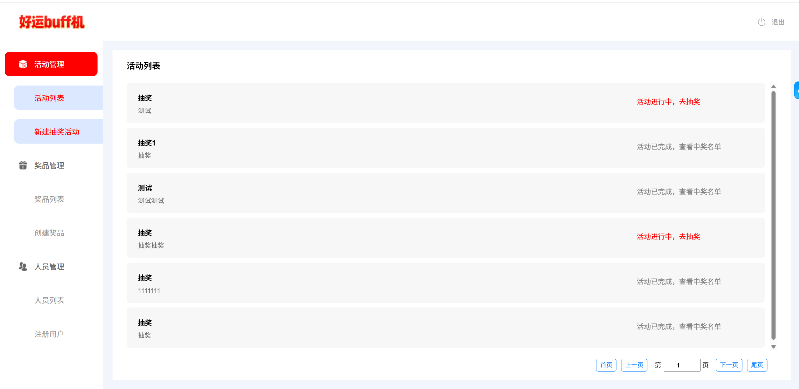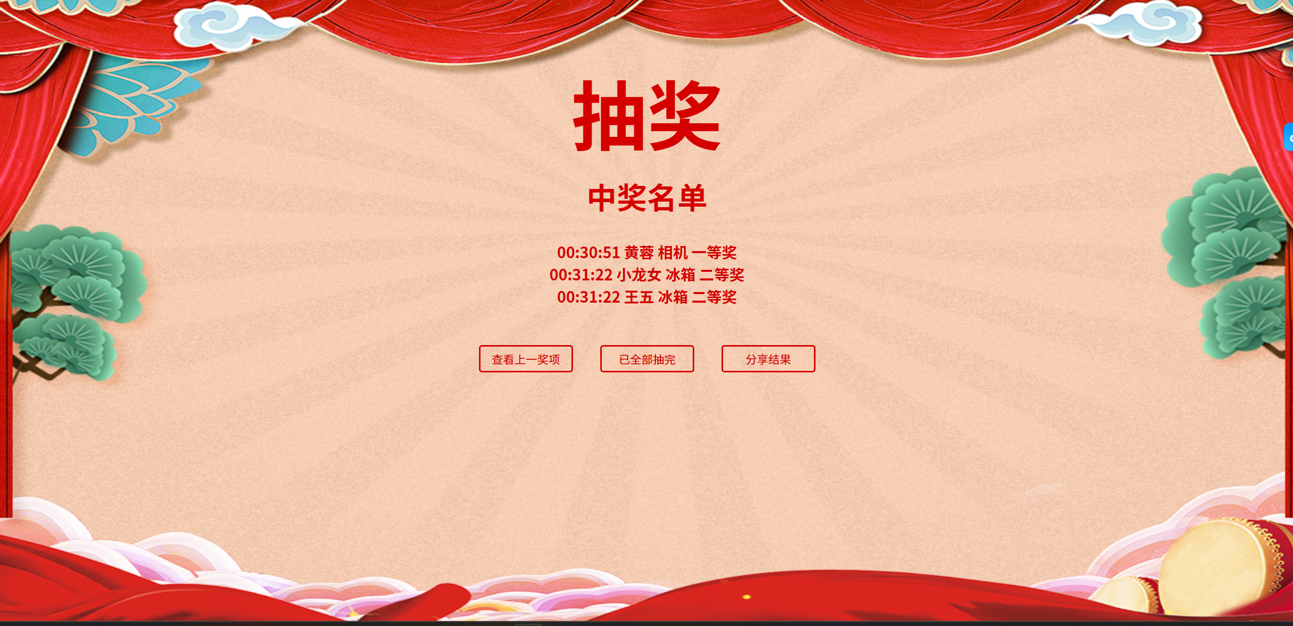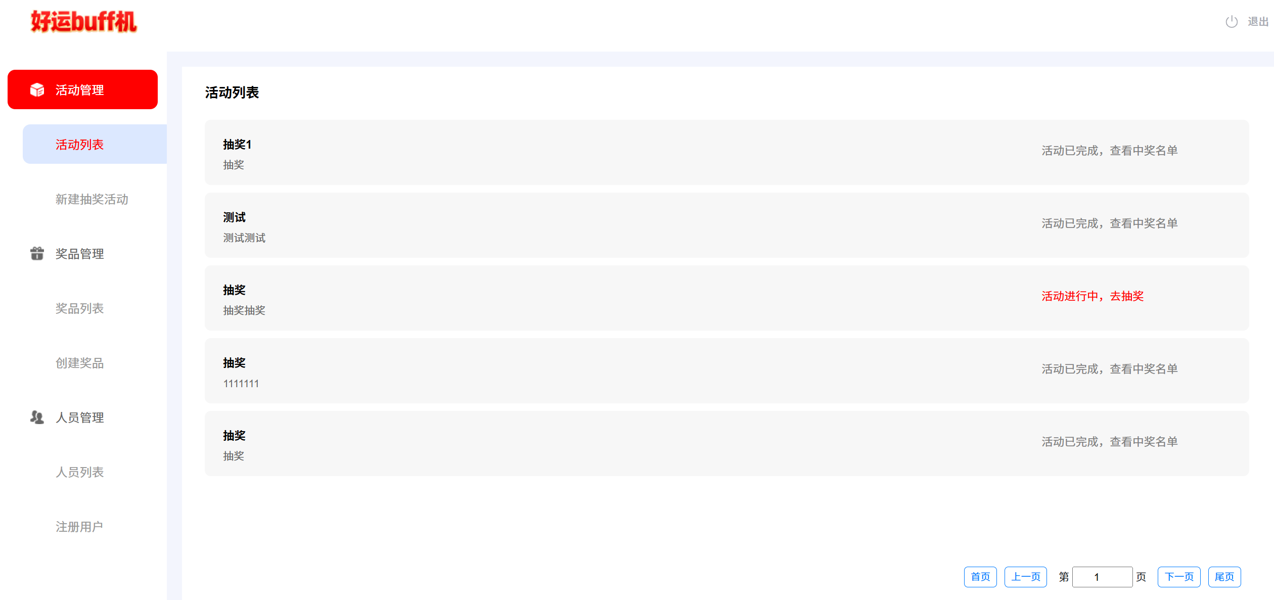 - 抽奖模块:抽奖活动、中奖者页面展示