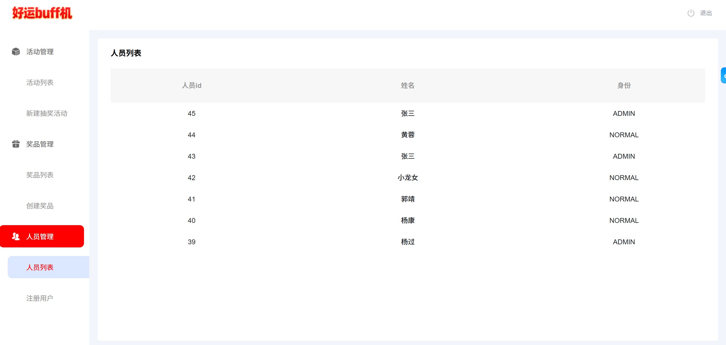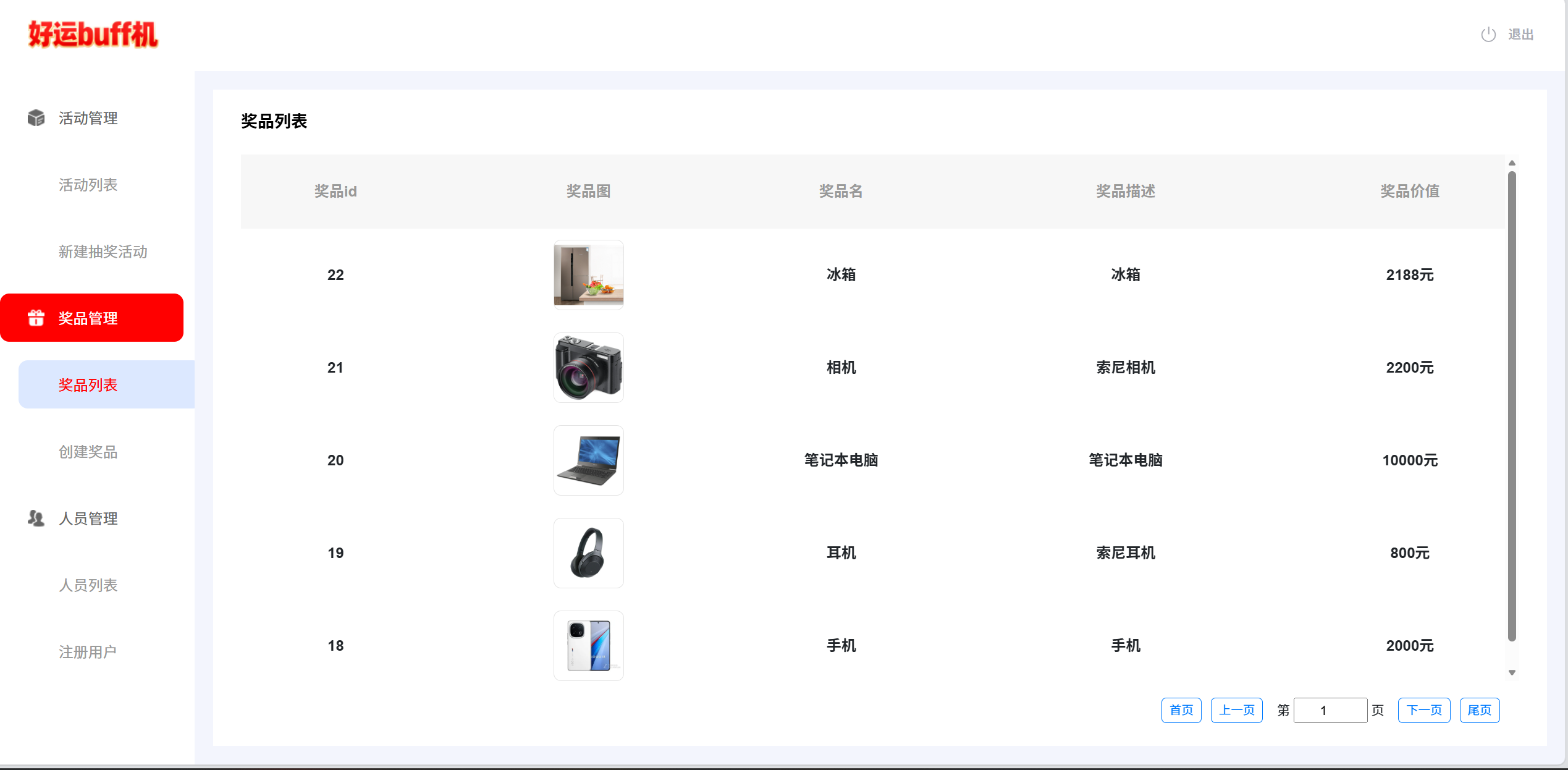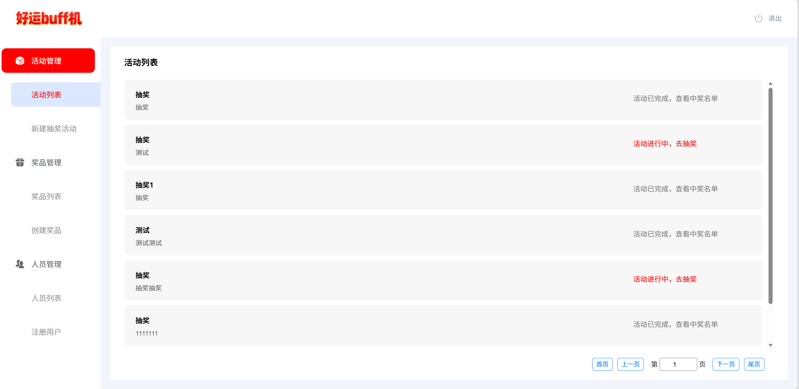 - 抽奖模块:抽奖活动、中奖者页面展示