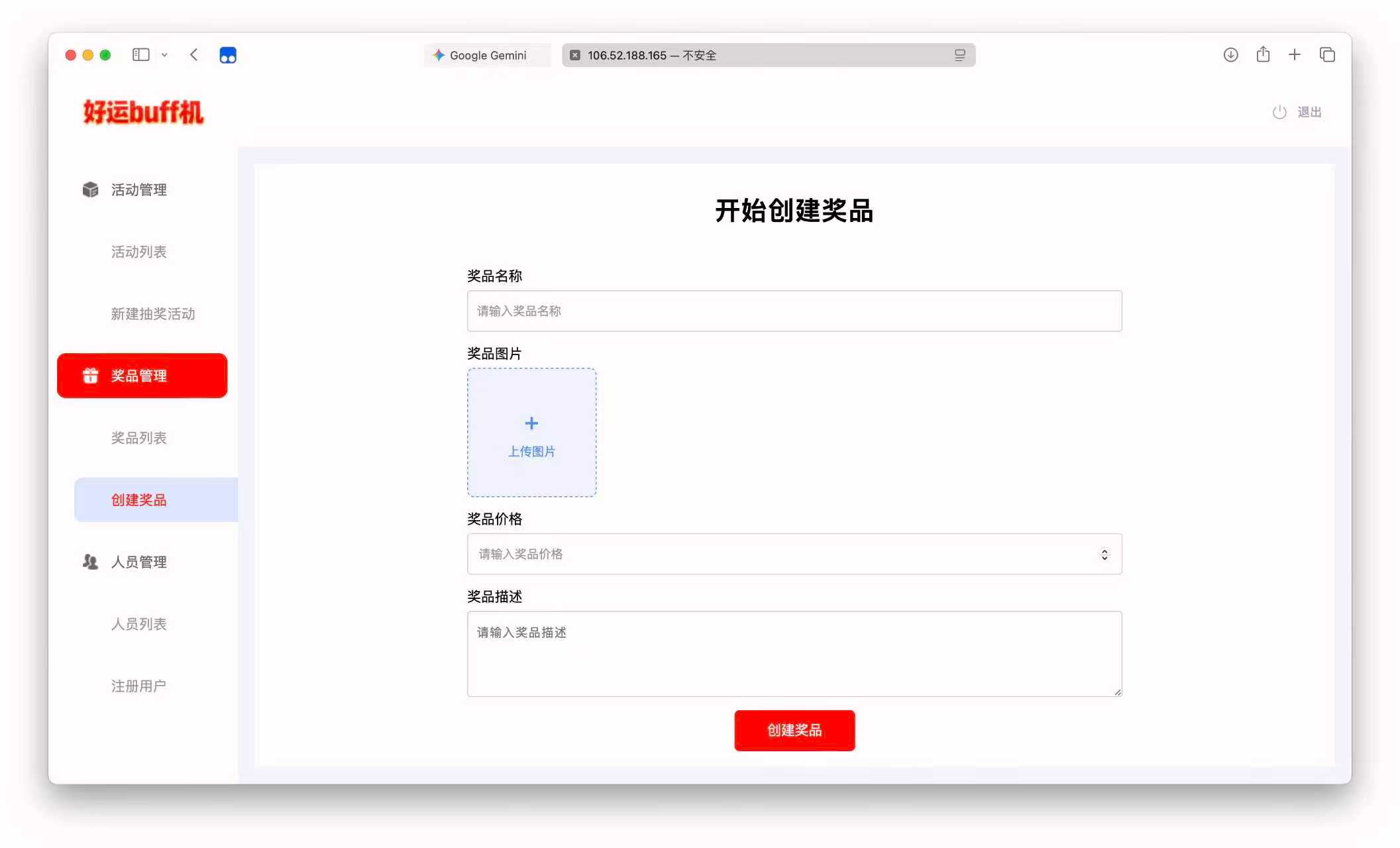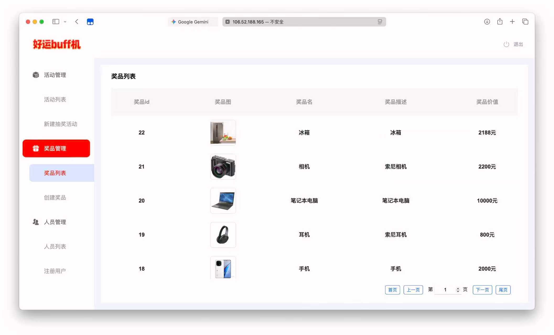 测试场景三:填写奖品名称、奖品图片,其他不填